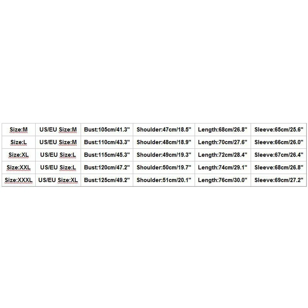 Размер US/EU Размеры Обхват груди Сумка на плечо Длина Рукава М М 105 см/41,3" 47 см/18,5" 68 см/26,8" 65 см/25,6" L М 110 см/43,3" 48 см/18,9" 70 см/27,6" 66 см/26,0" XL L 115 см/45,3" 49 см/19,3" 72 см/28,4" 67 см/26,4" XXL L 120 см/47,2" 50 см/19,7" 74 см/29,1" 68 см/26,8" XХХL XL 125 см/49,2" 51 см/20,1" 76 см/30,0" 69 см/27,2"