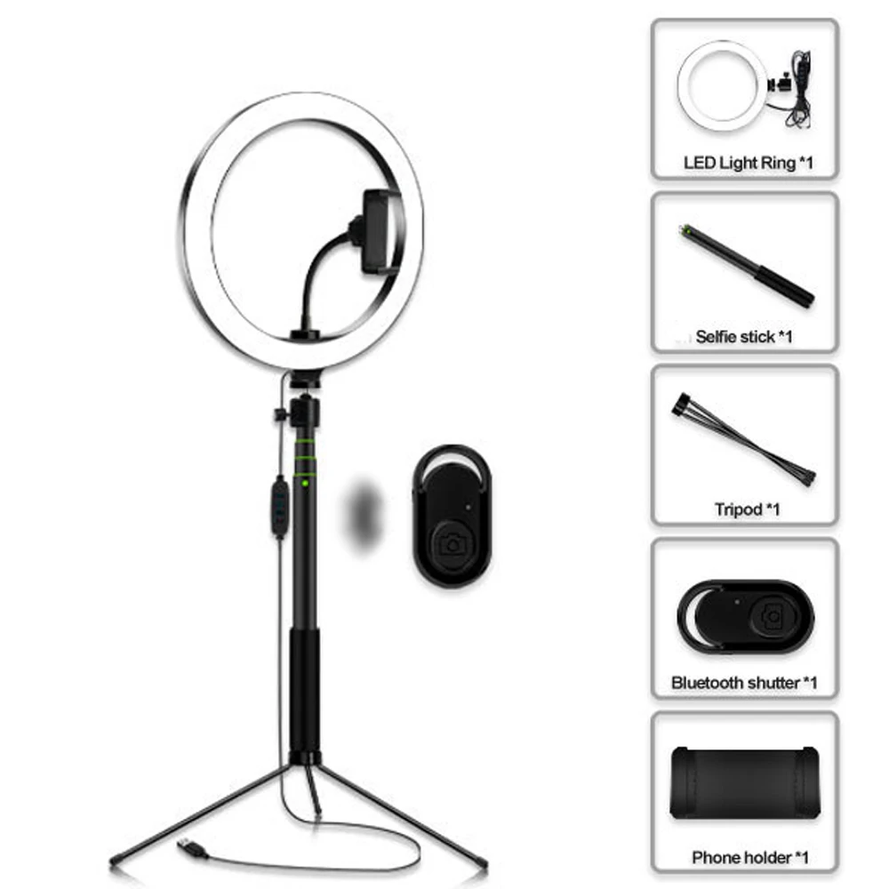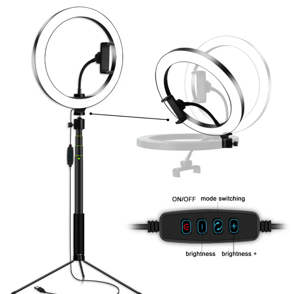 Светильник трех цветов (белый, холодный белый и теплый белый), каждый из которых имеет 10 уровней яркости. Идеальный светильник для макияжа, фотосъемки, видеосъемки, чтения книг и прямой трансляции.