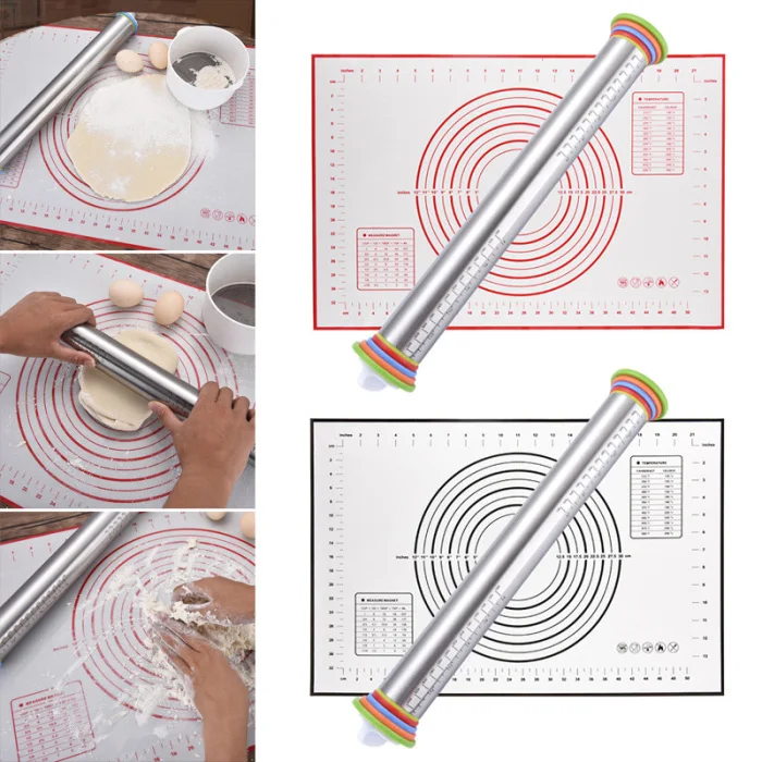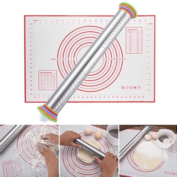 Hot Sale Rolling Pin Set Adjustable Thickness Stainless Steel Rolling Pins Dough Roller for Baking Dough 688