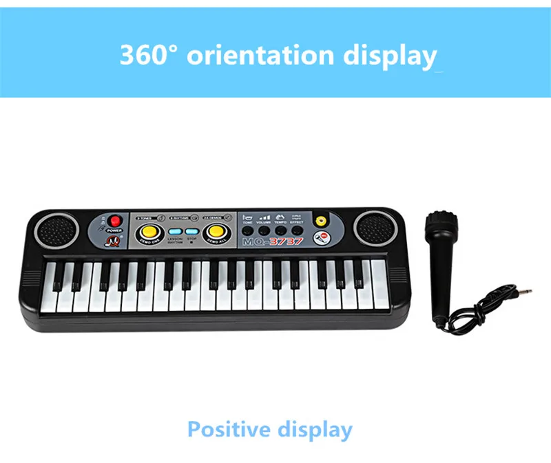 Цвет: черный Размер клавиатуры: 33,6*11*4,7 см Голос: 3 вида Ритм: 8 видов Аккумулятор: 4 батарейки (необходимо подготовить самостоятельно) Посылка ходит: 1 * Клавиатура 1 * микрофон