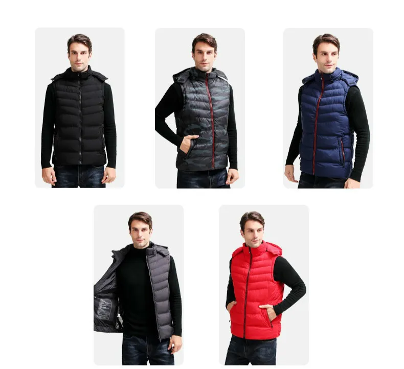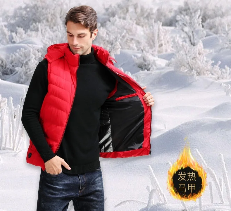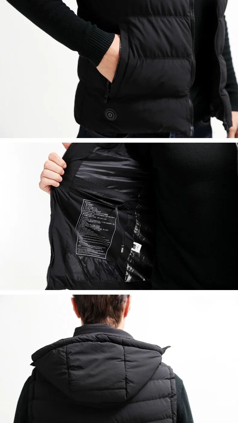 Мужской теплый жилет с капюшоном и зарядкой через USB, зимний утепленный жилет с капюшоном для активного отдыха на открытом воздухе, спортивные теплые жилеты 4XL