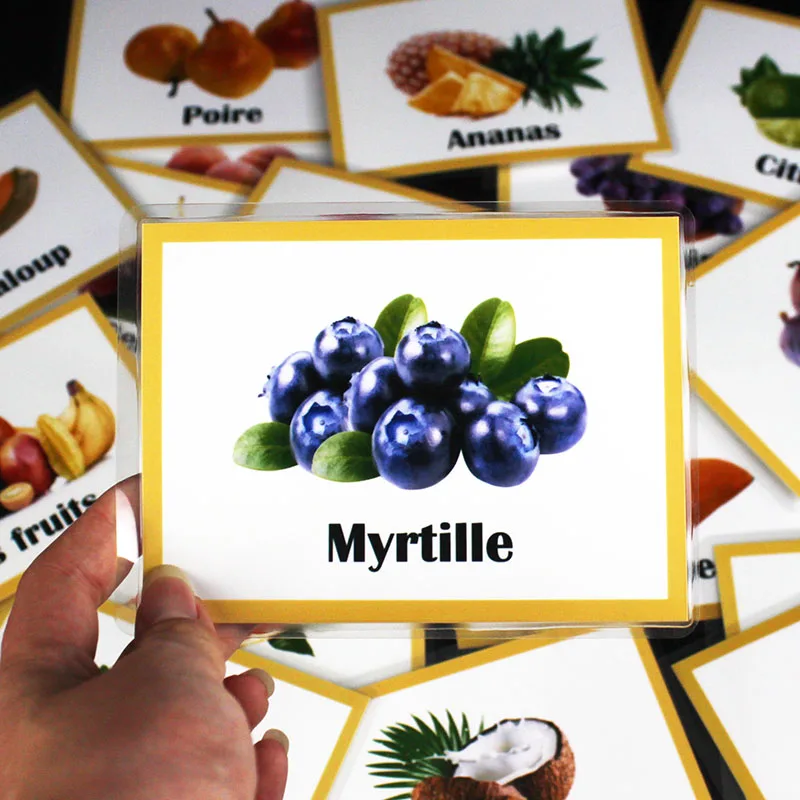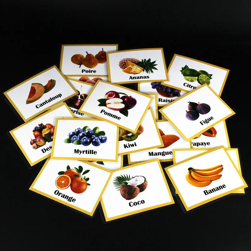 Дети французские фрукты учат Монтессори Educativos слово карманная флэш-карта ребенок активное обучение ранняя Развивающая игра детские игрушки
