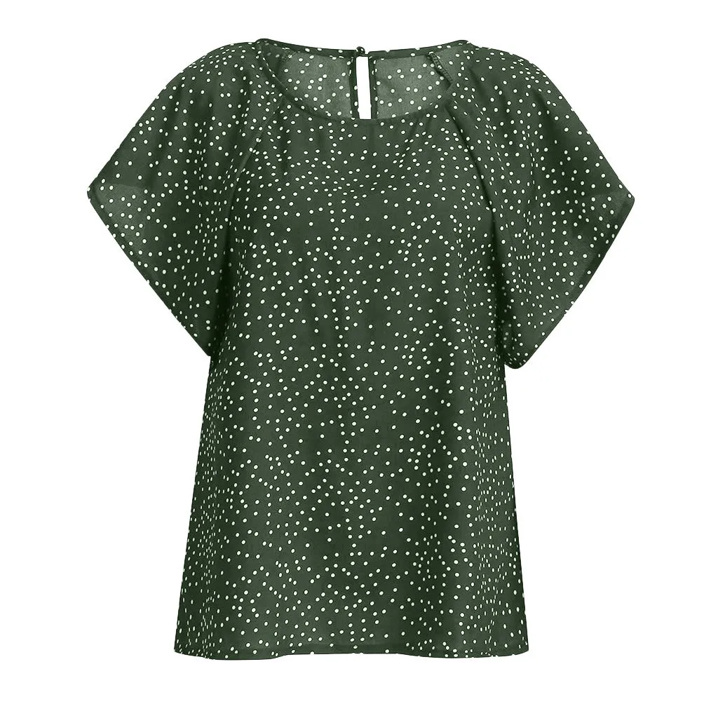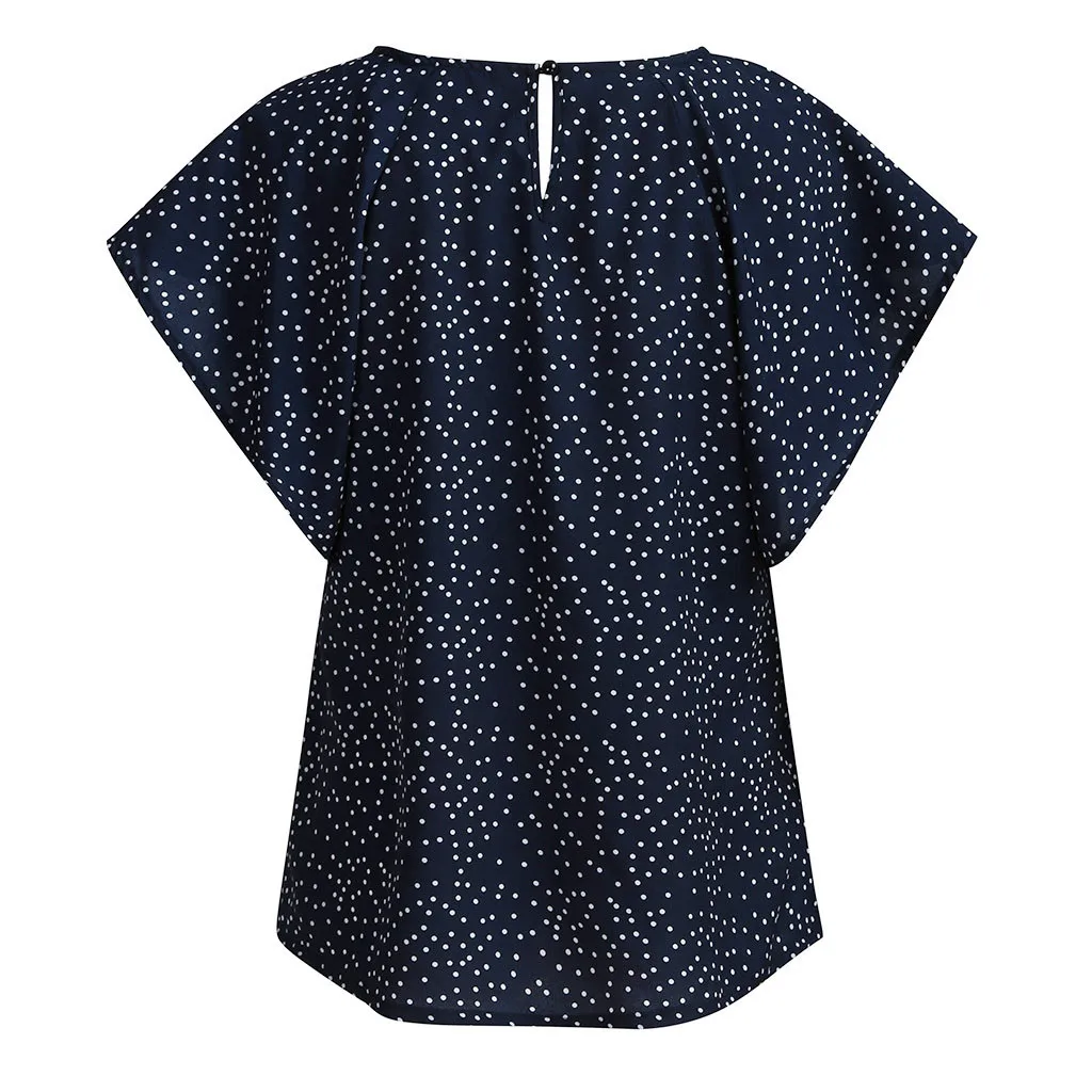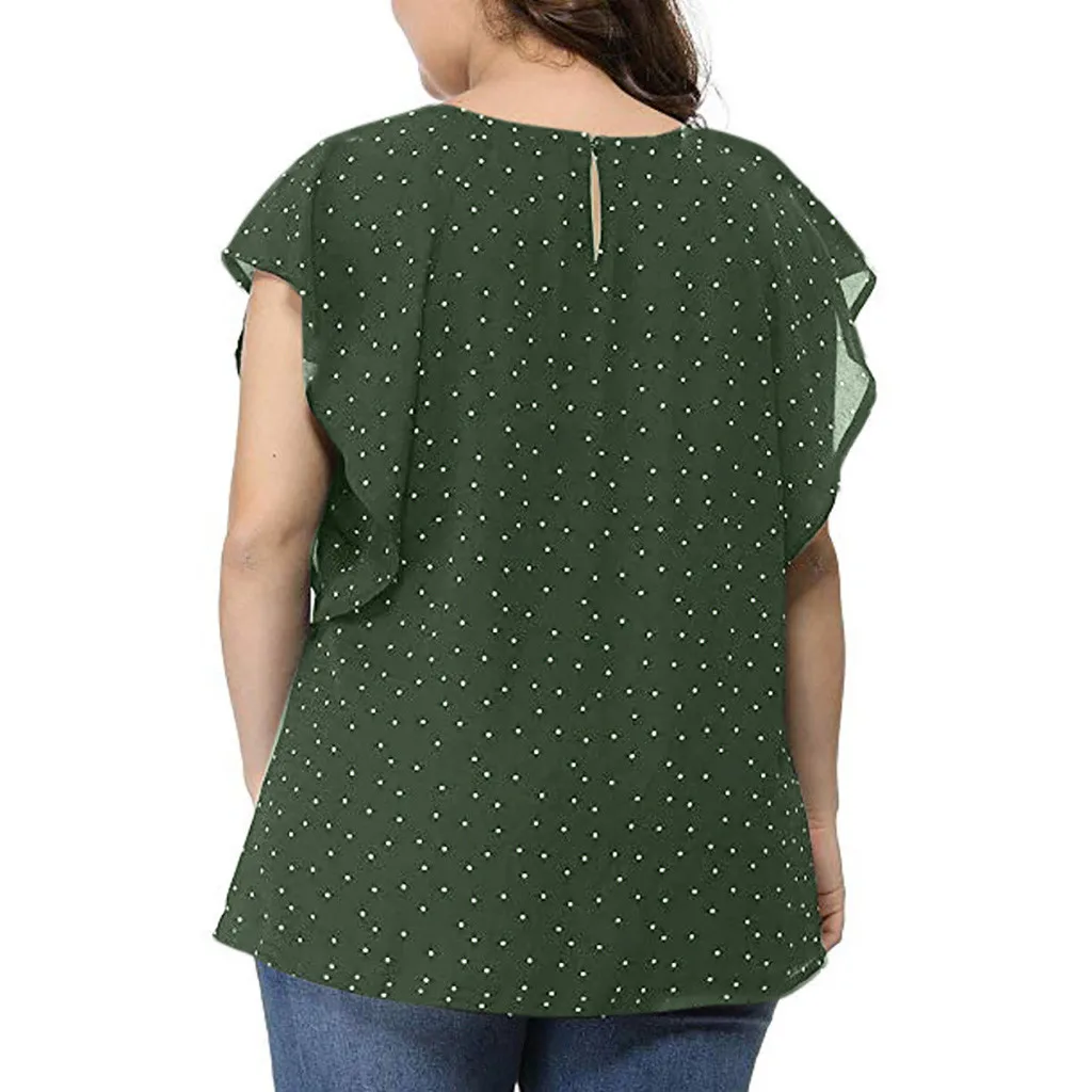 Женская шифоновая блузка в горошек с коротким рукавом, Летняя туника 5XL размера плюс, блузка с рукавом-бабочкой, 2020