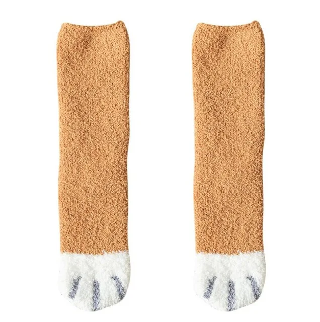 1 пара плюшевых носков из кораллового флиса; Женские носки без пятки; Сезон осень-зима; Милые толстые теплые носки для сна с когтями