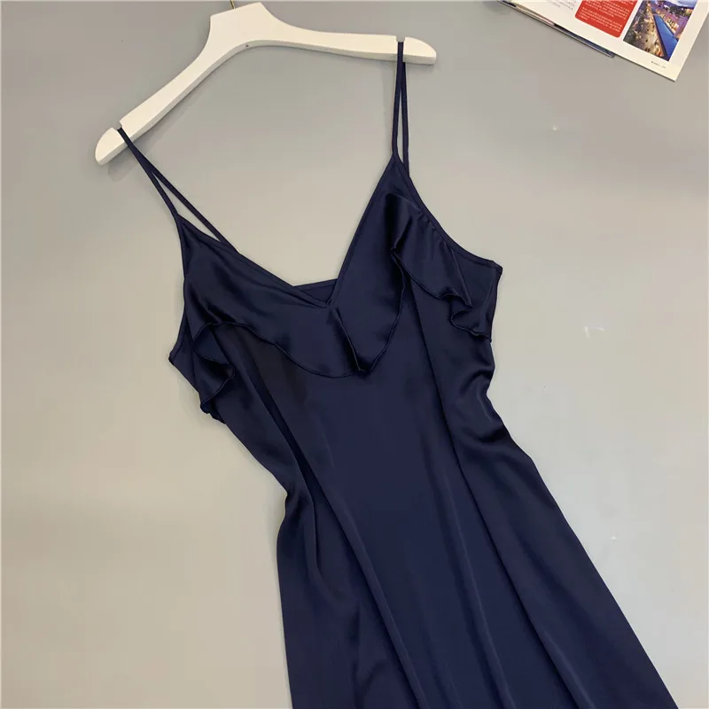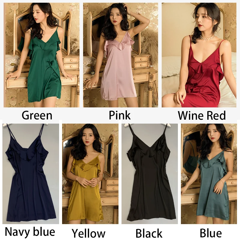 Ткань: шелковый атлас, Это не обычное Женское ночное платье для сна. Мягкий и удобный светильник из дышащей ткани. Для превосходного качества жизни, эти ультра-мягкие женские спальные ночные рубашки абсолютно хороший выбор. Ночная рубашка без рукавов с v-образным вырезом, милыми оборками спереди и сзади для элегантности. [Отлично подходит как подарок]-платье для сна-это один из тех теплых привычных продуктов, которые всегда ценятся в качестве подарка.