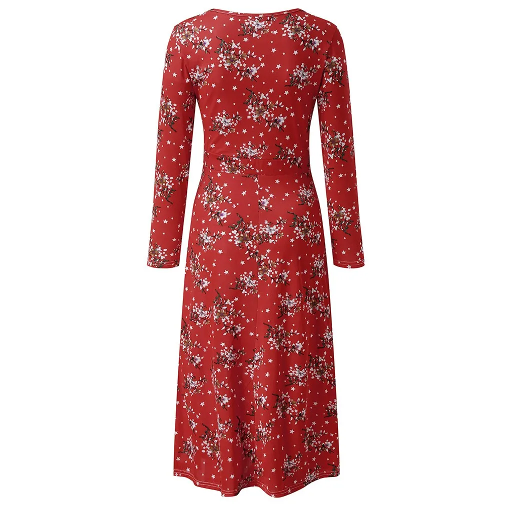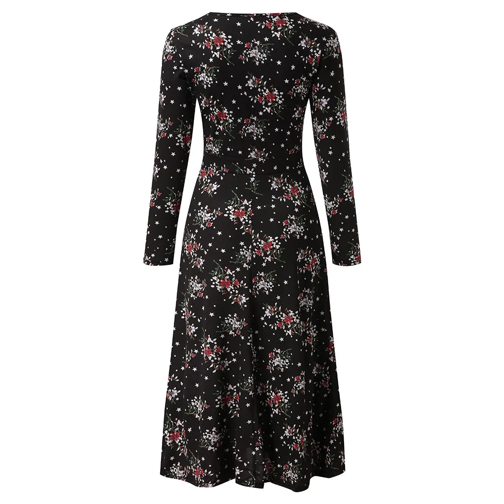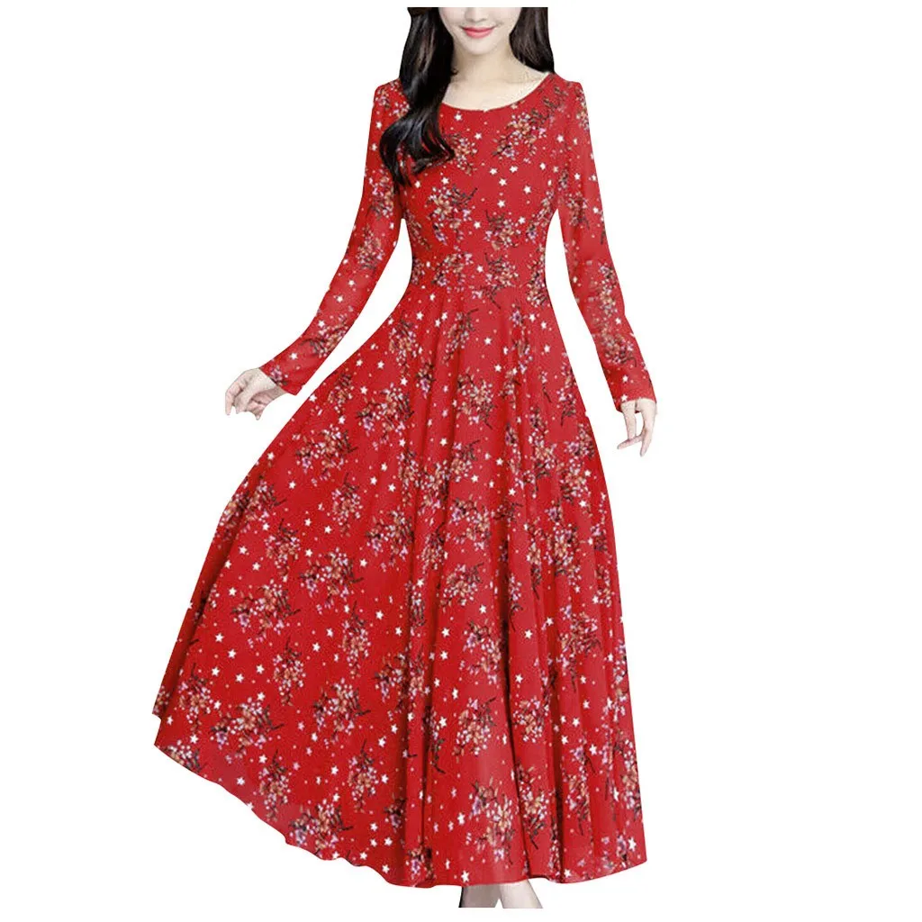Женское цветочное пляжное платье с длинным рукавом, Повседневные Вечерние платья в винтажном стиле, платье макси в стиле бохо