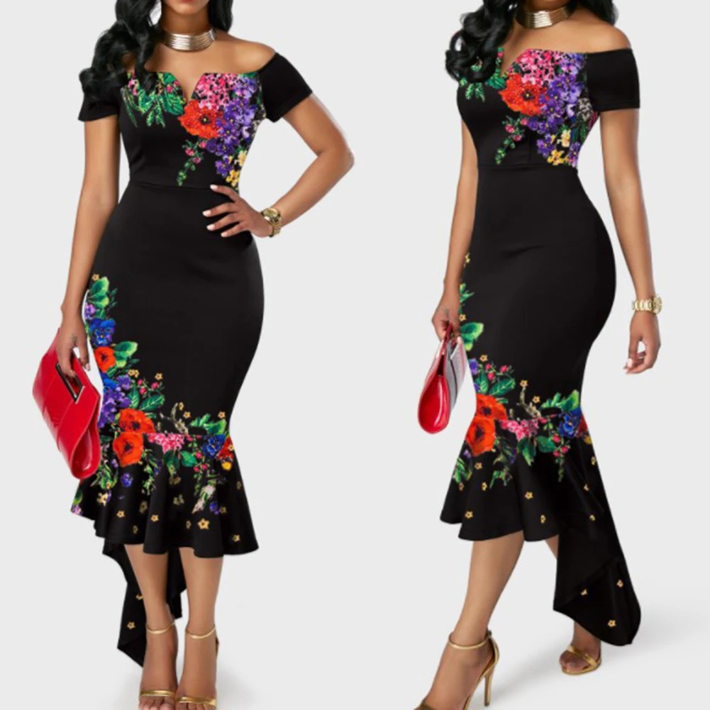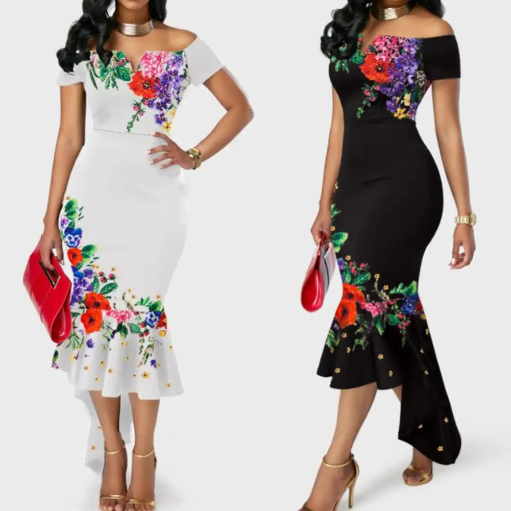 Женское асимметричное облегающее платье с цветочной вышивкой и открытыми плечами, Формальные вечерние платья в стиле русалки, лето 2019