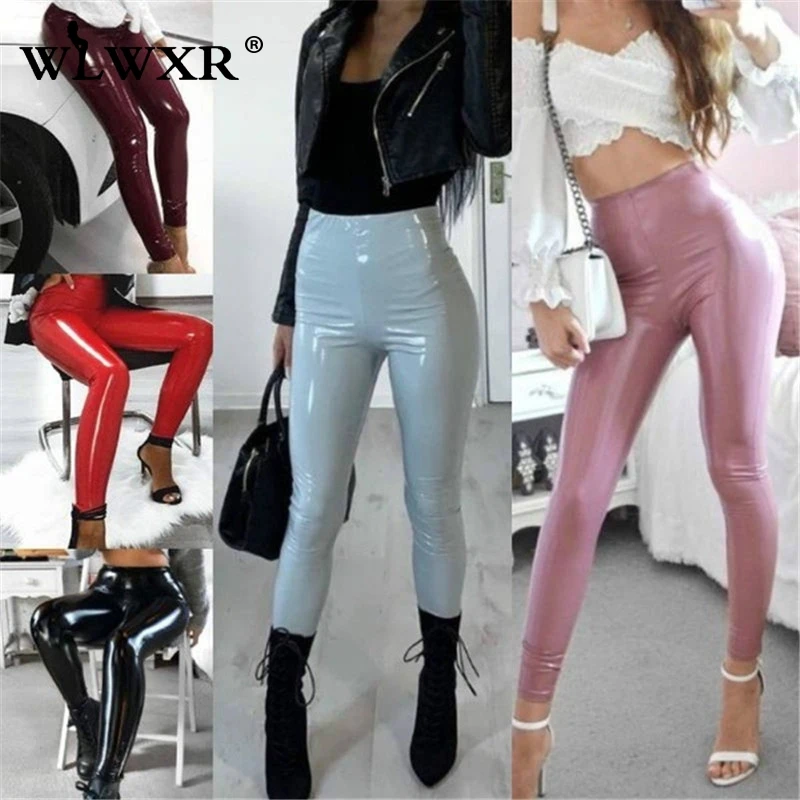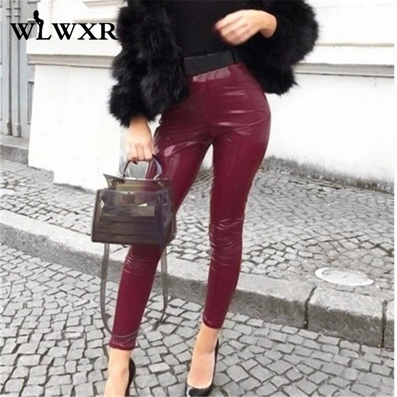 WLWXR осень зима Pu кожаные брюки женские брюки 2019 Высокая талия обтягивающие брюки женские черные розовые красные Сексуальные облегающие брюки