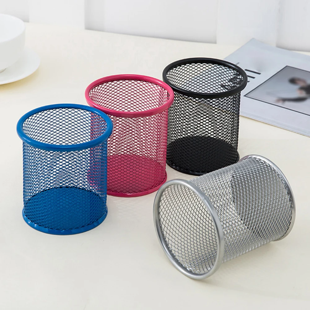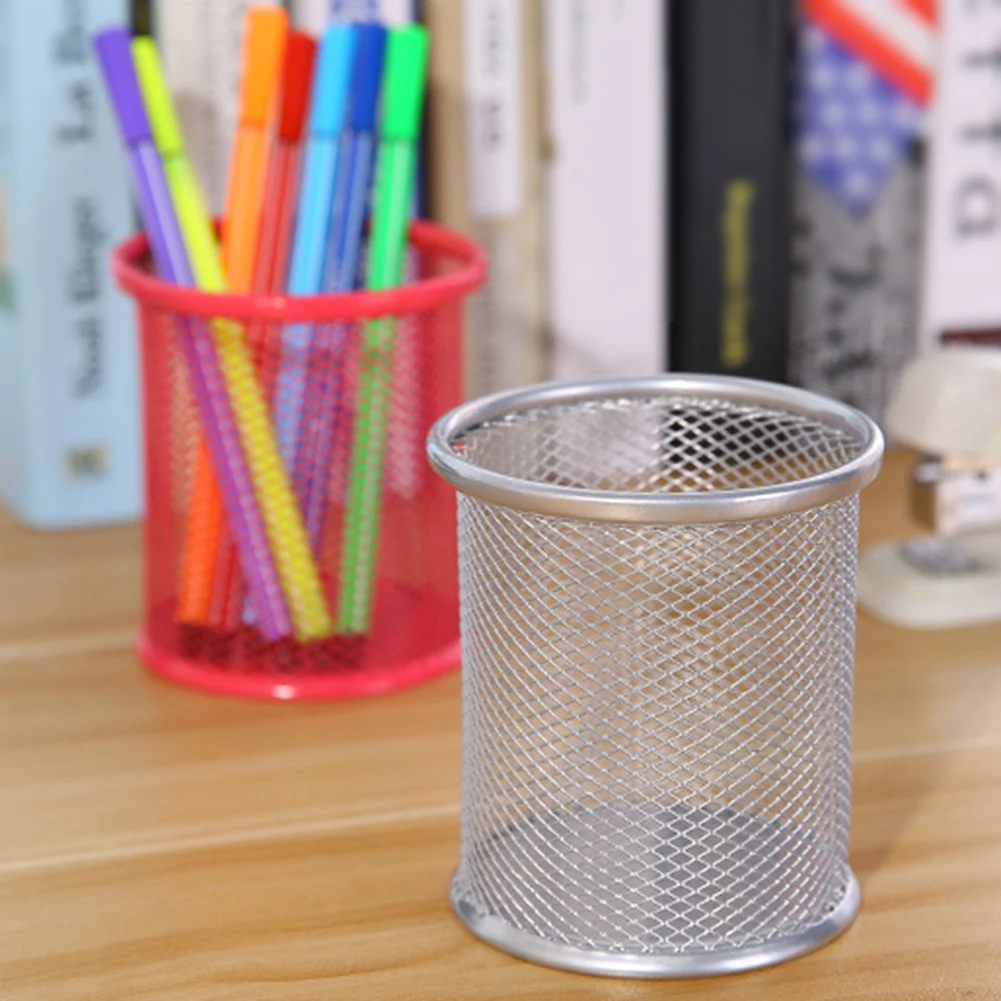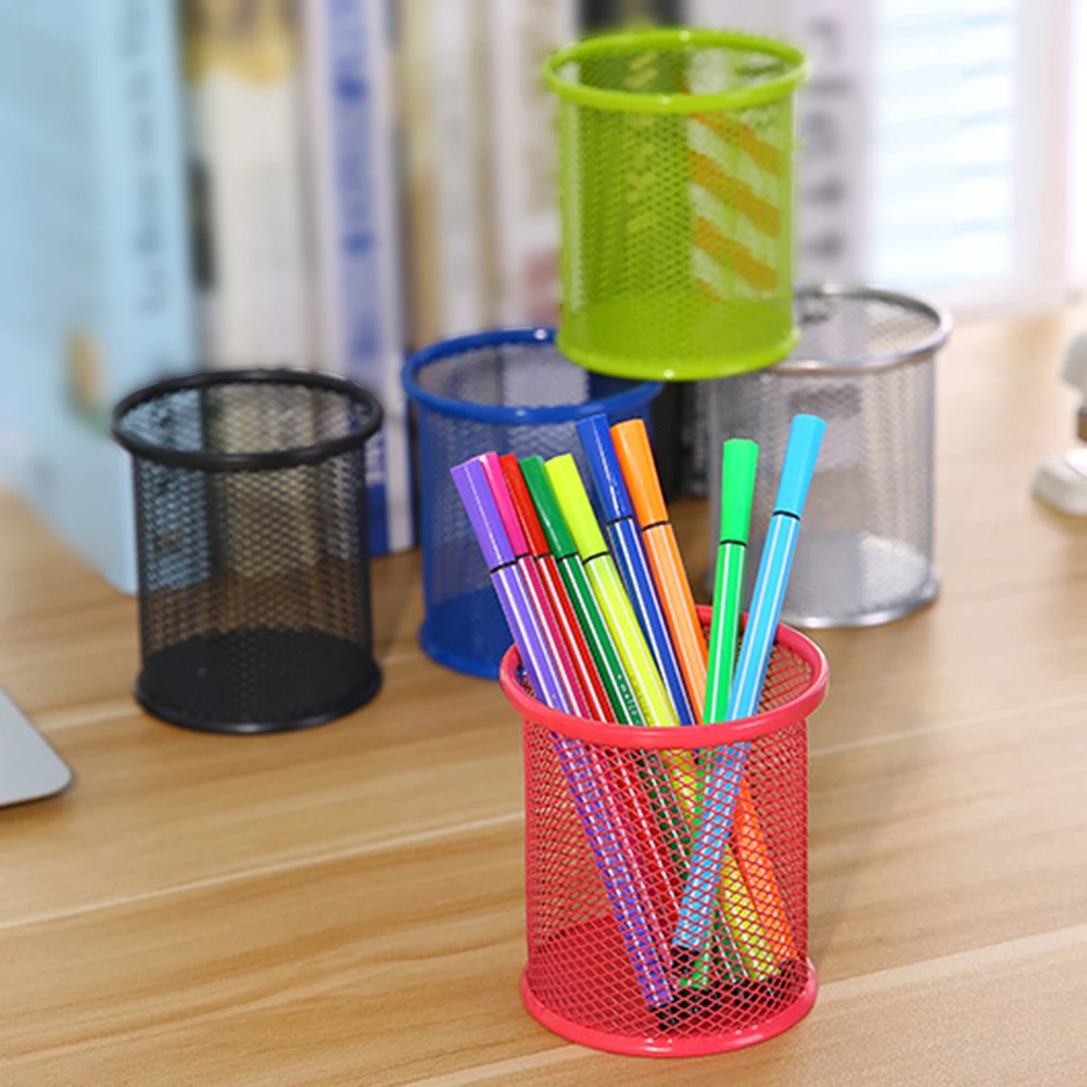 Круглая/квадратная железная сетчатая подставка для ручек, офисный Настольный карандаш, чехол для канцелярских принадлежностей