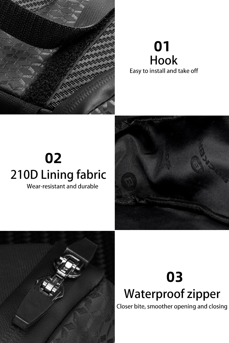 Сумка с водонепроницаемой молнией Светоотражающий светильник и крючок Более безопасный в ночное время запатентованный внешний дизайн Более подходящий для велосипеда портативный, ударопрочный