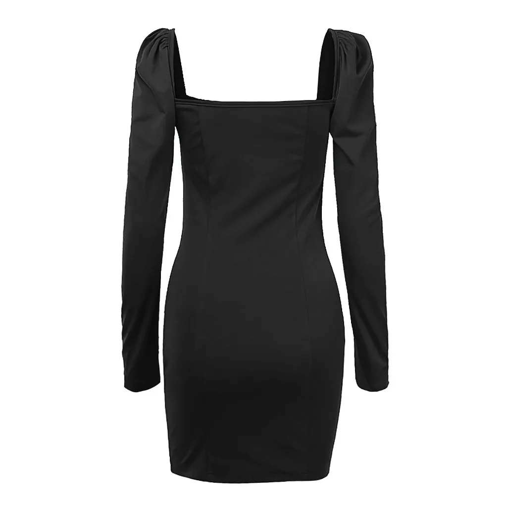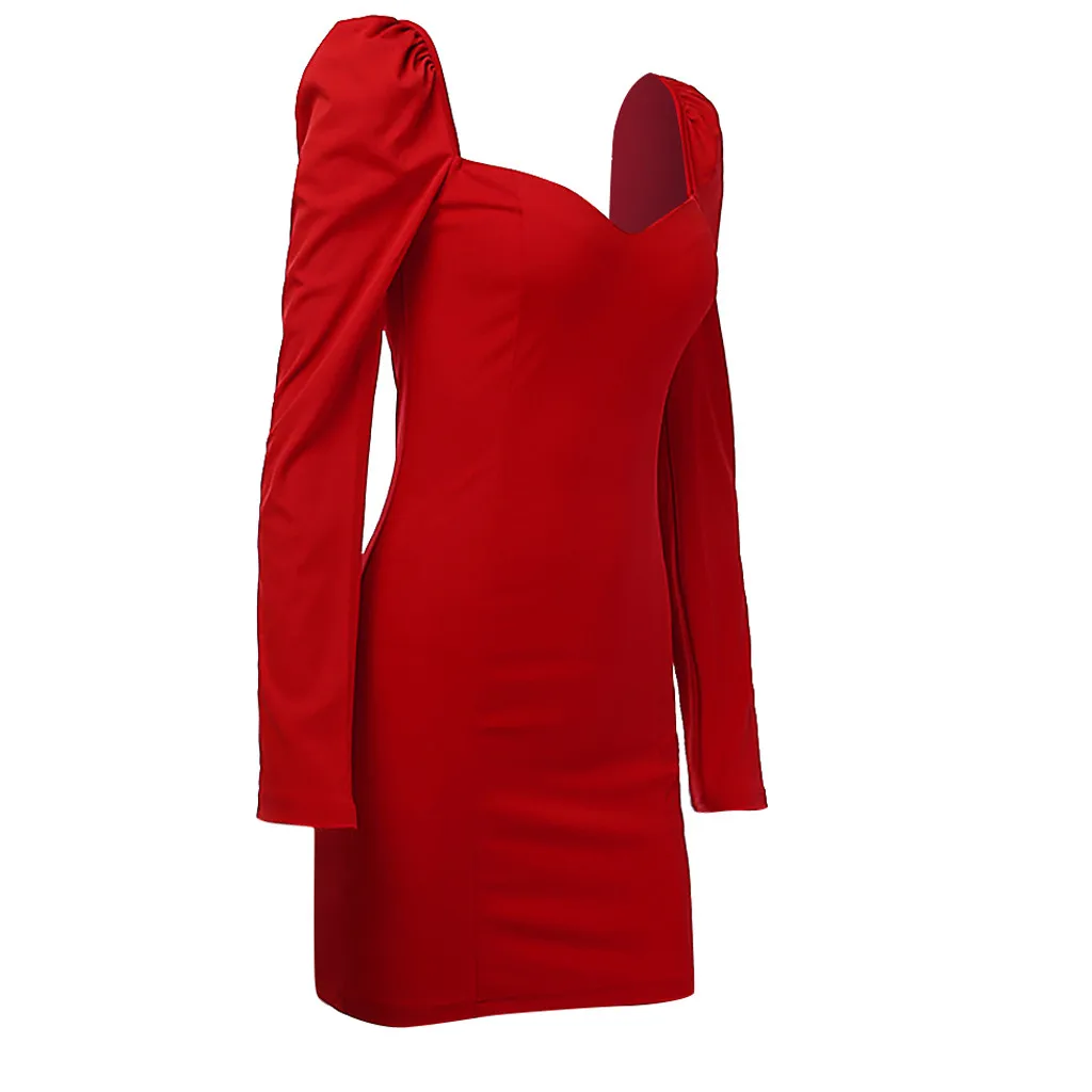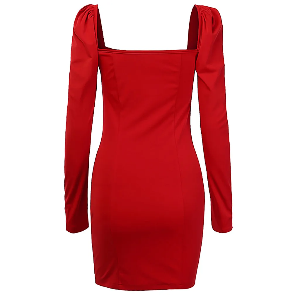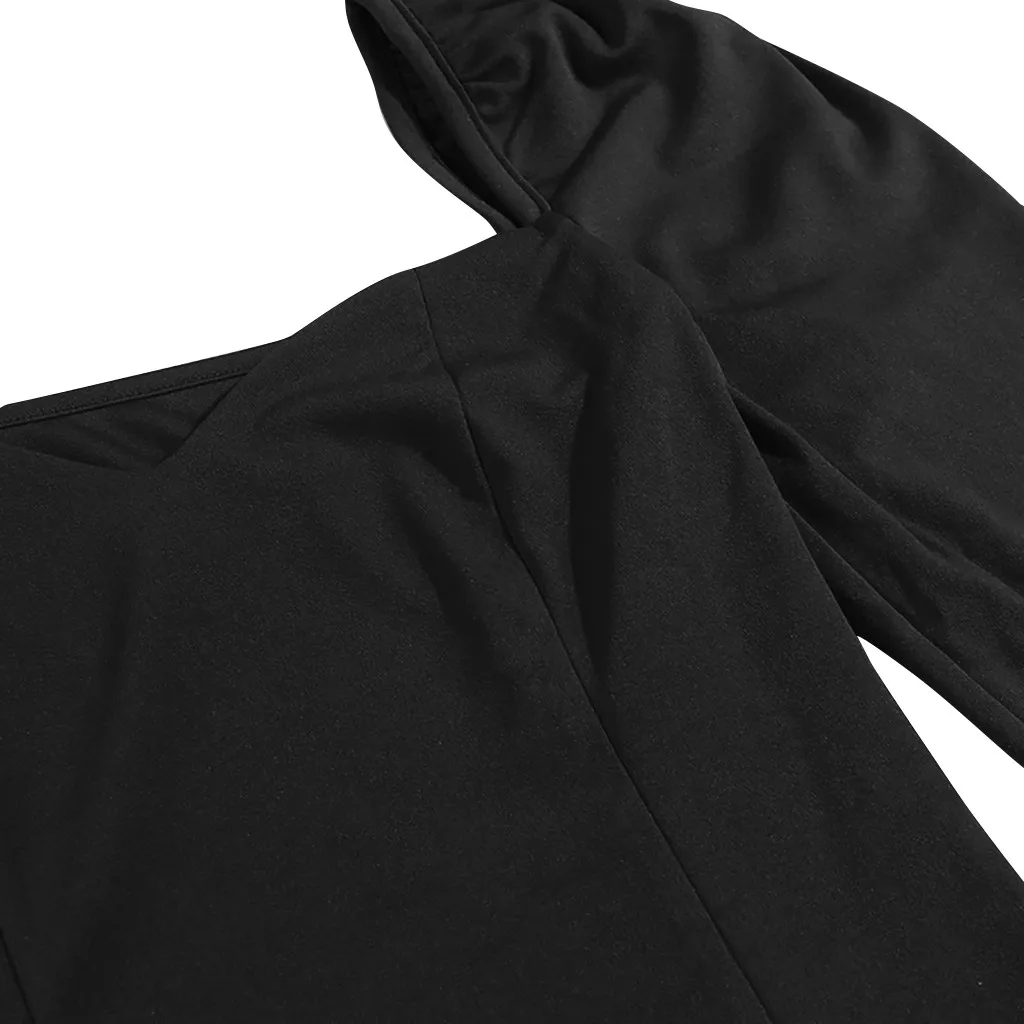 Женское модное однотонное тонкое элегантное винтажное платье с длинным рукавом и v-образным вырезом