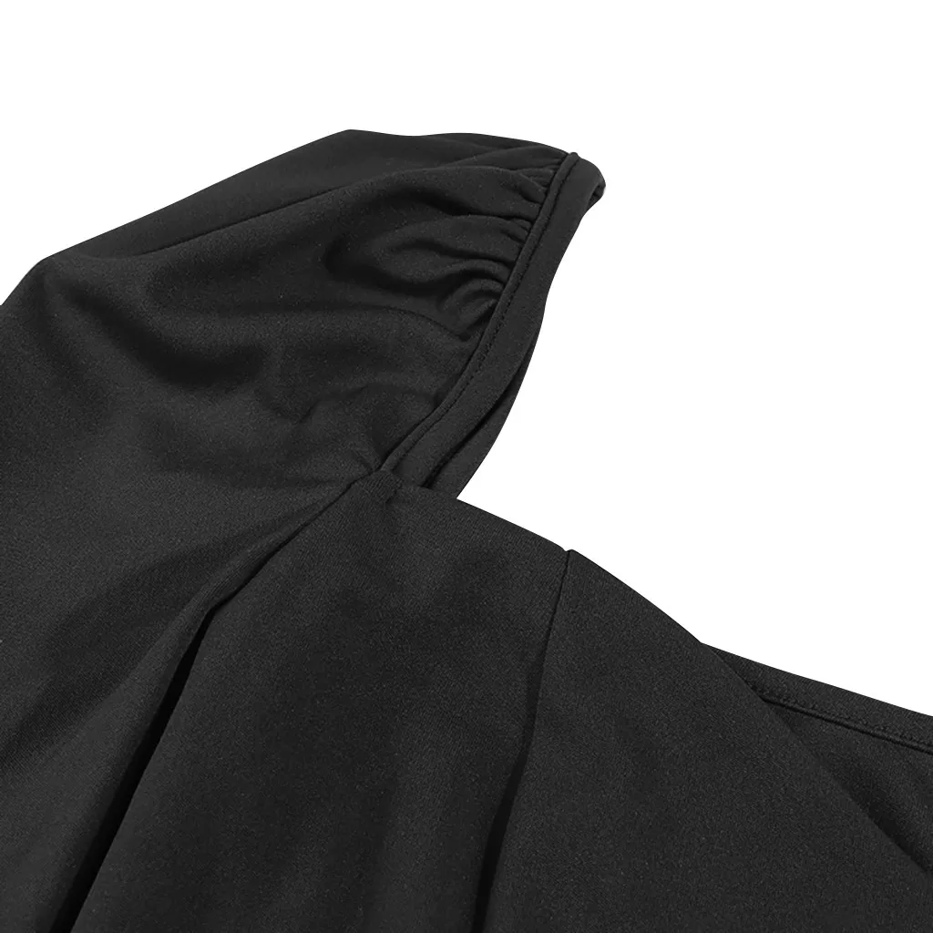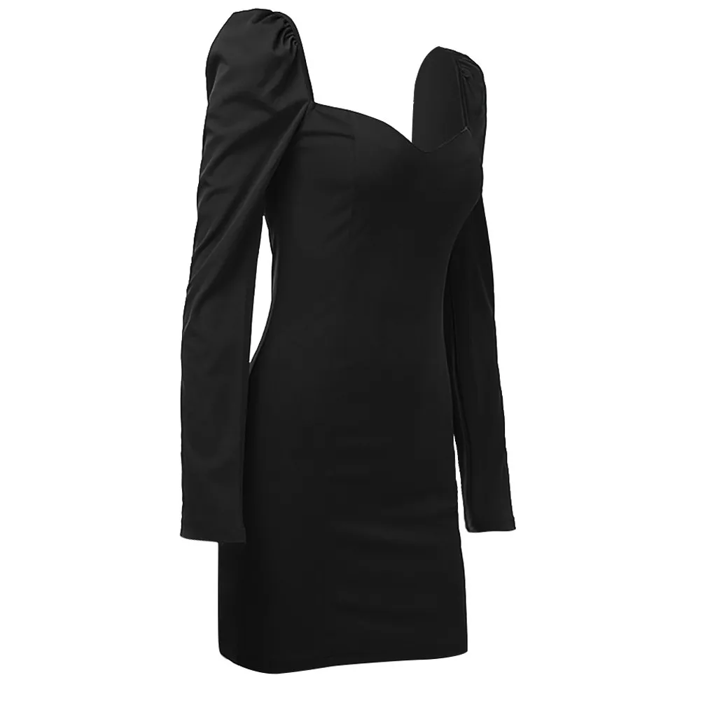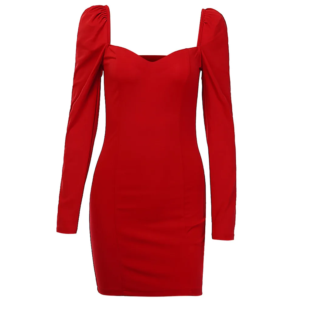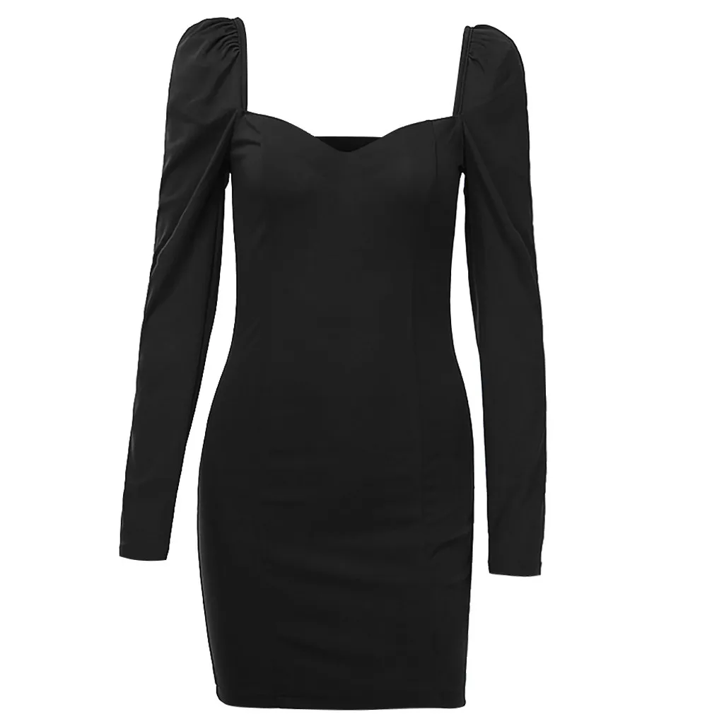 Женское модное однотонное тонкое элегантное винтажное платье с длинным рукавом и v-образным вырезом