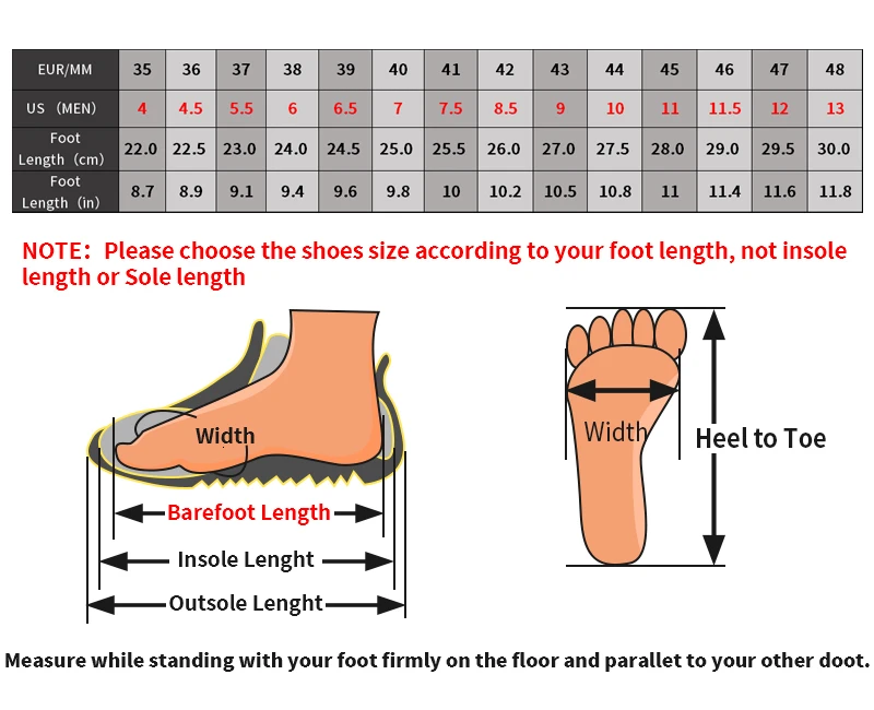 5. Пожалуйста, выберите размер в соответствии с длиной стопы