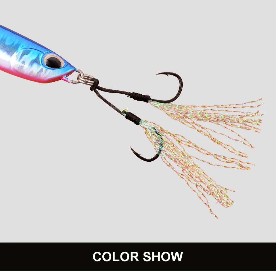 Спецификация: Бренд: ilure Вес: 10 г/20 г/30 г/40 г/50 г/60 г Длина: 47 мм/61 мм/70 мм/77 мм/80 мм/85 мм Глаза: 3d-натуральные глаза Цвет: 6 различных цветов Крючки: с крючками BKK Действия: очень привлекательные действия Особенность: литье Узор: высококачественная бумага для тиснения золота