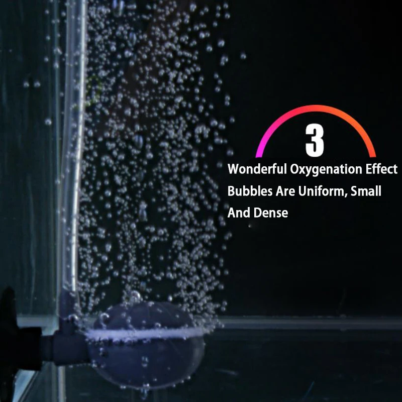 1. Полезная конструкция низкого давления подходит для любого насоса 2. Регулировка плотности размера пузырьков 3. Замечательные пузырьки насыщенности кислородом являются однородными, маленькими и плотными 4. Сильный патрон стабильная Адсорбция фиксируется в аквариуме, не легко отвалиться 5. Сменный хлопок, легко разбирается и чистится и прочен