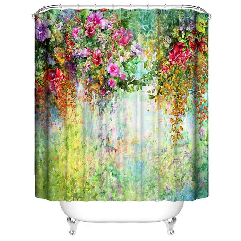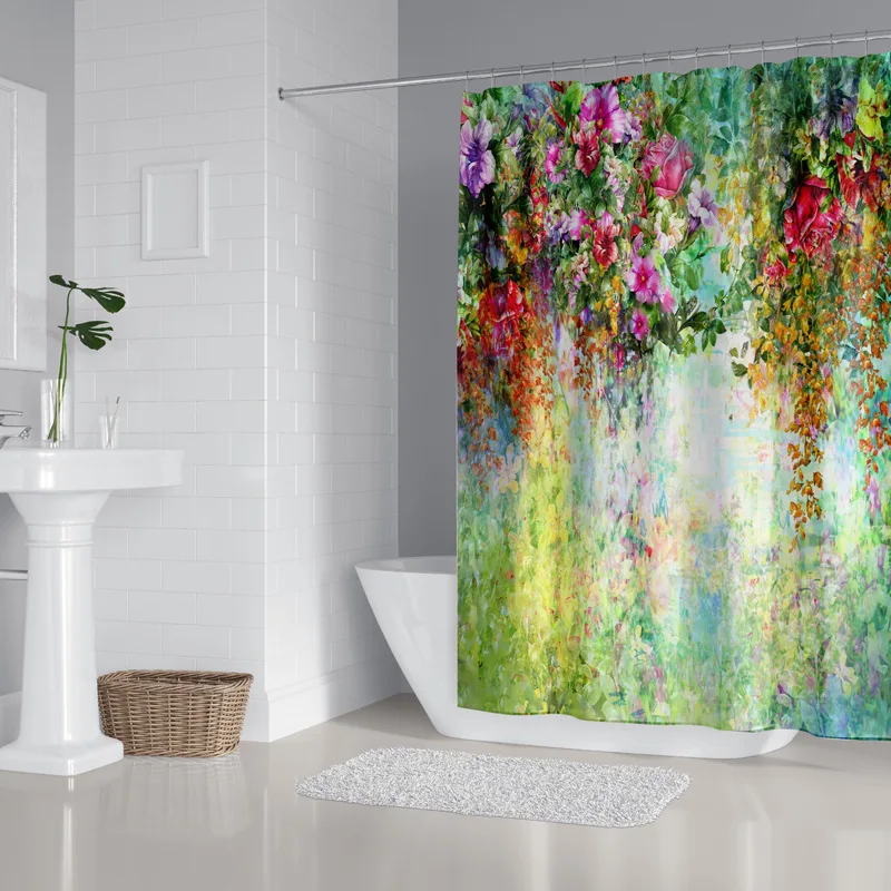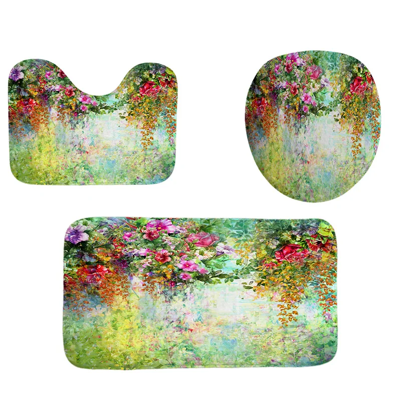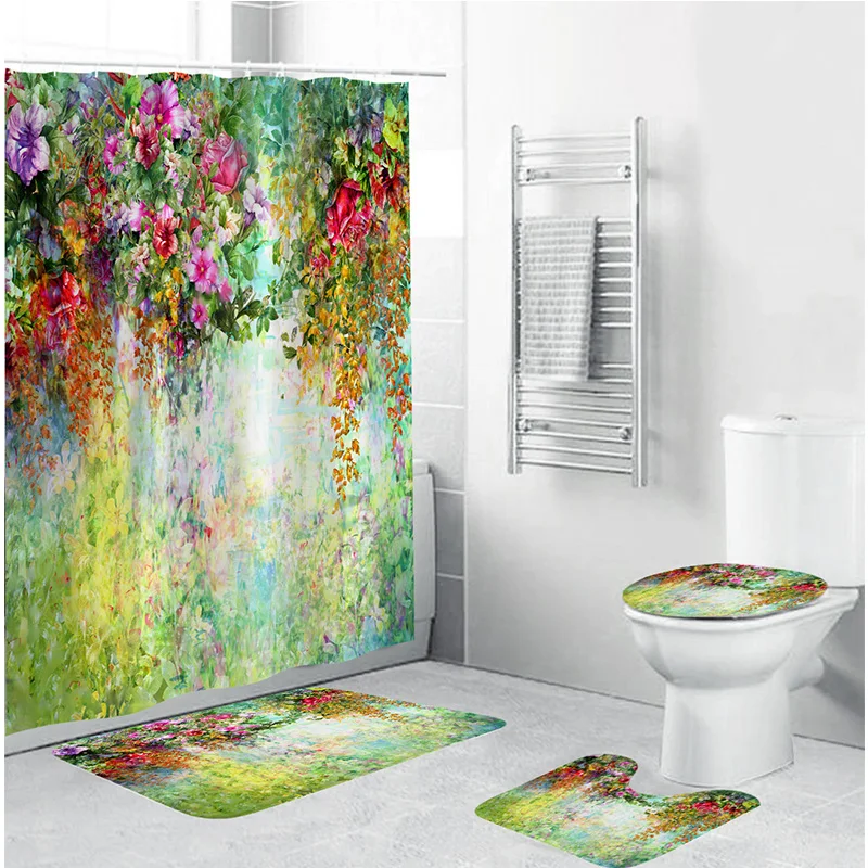 Занавеска для ванной комнаты с красочным цветочным принтом, прочная водонепроницаемая наборы занавесок для ванной, туалетный коврик, нескользящий коврик для ванной комнаты