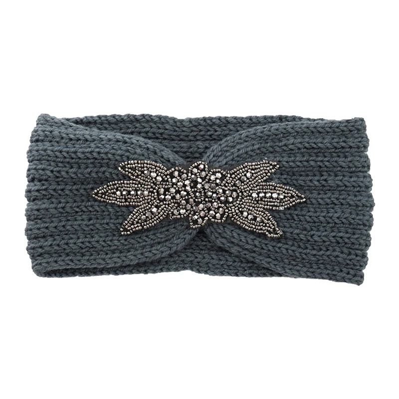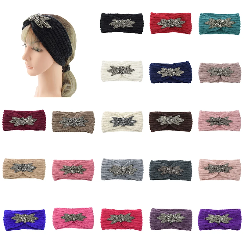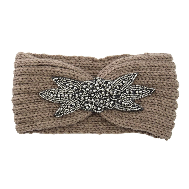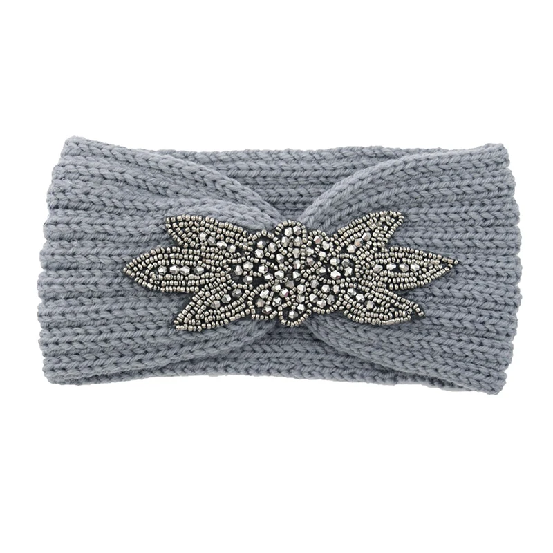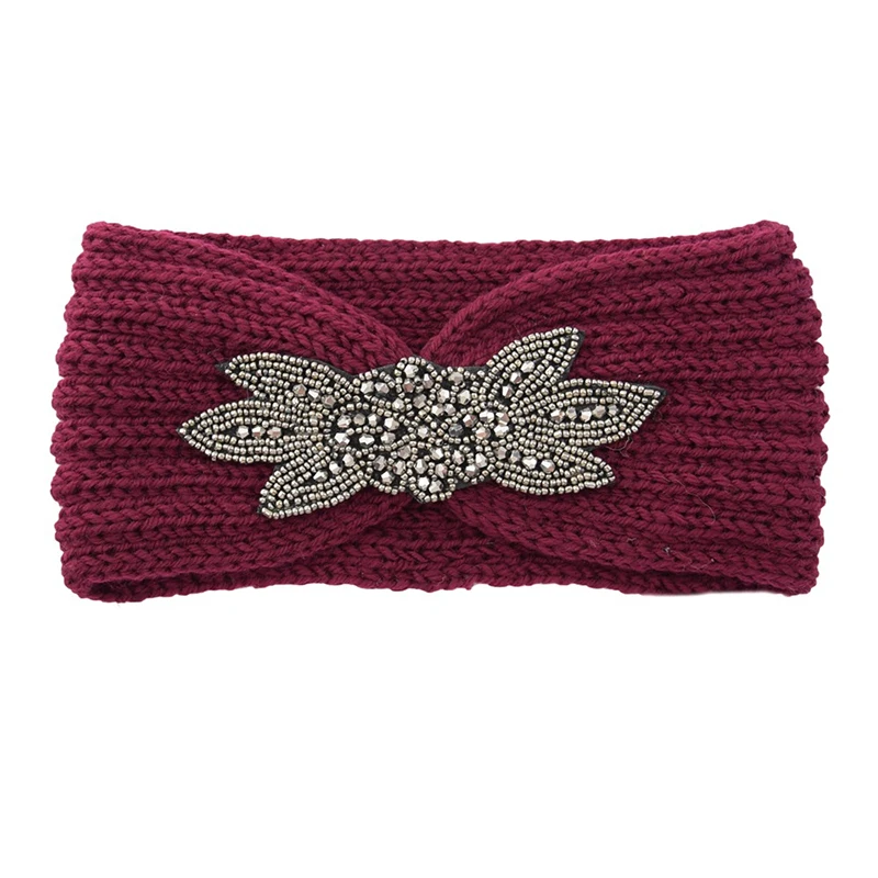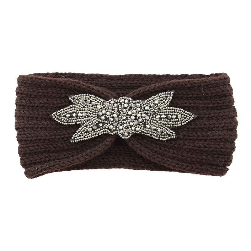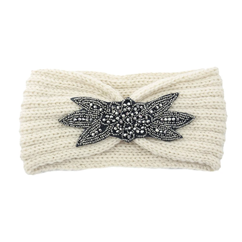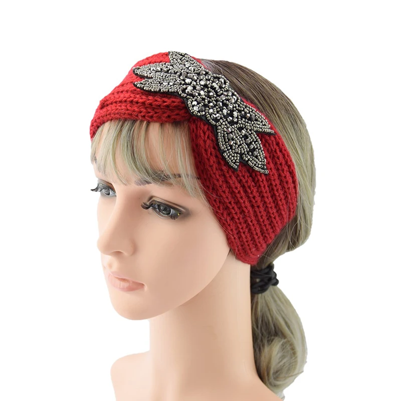 Вязаная повязка на голову с шестью листьями, украшенная кристаллами и бисером, зимняя широкая повязка на голову
