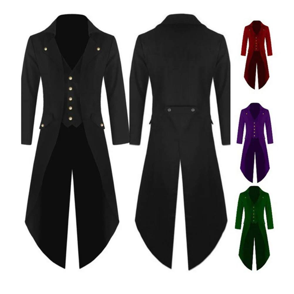 Взрослый мужской костюм в викторианском стиле, 4 цвета, смокинг, фрак, Готический стимпанк, Тренч, платье, наряд, пальто, униформа