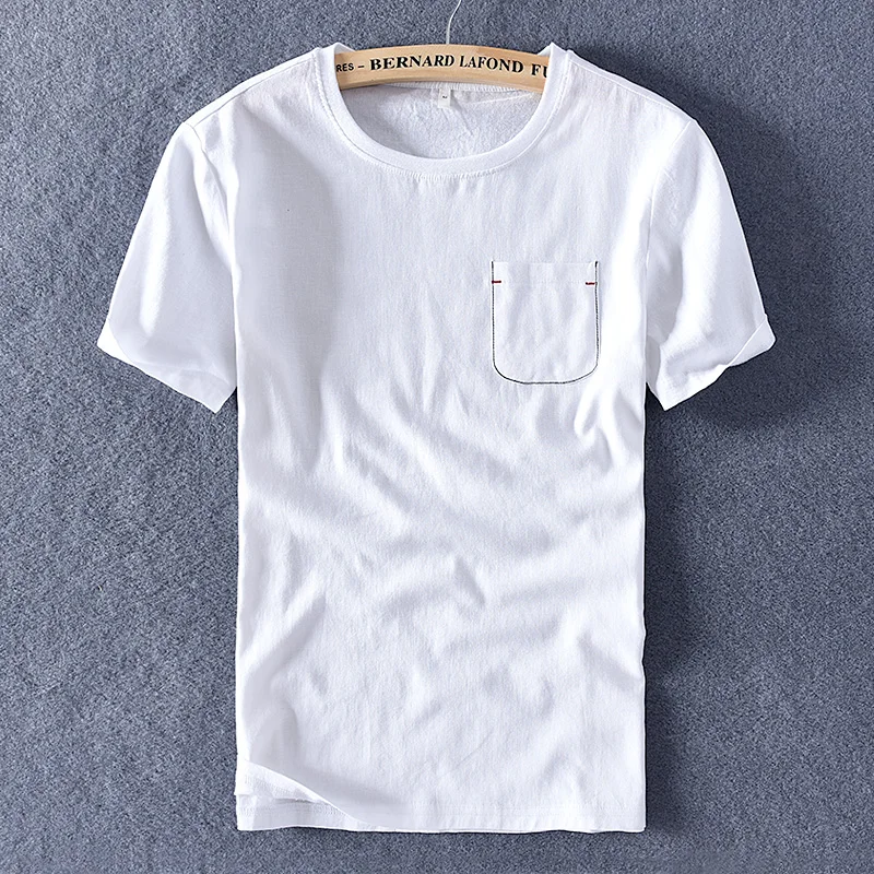 2020 черная Удобная льняная Футболка мужская брендовая итальянская стильная футболка для мужчин модные футболки с круглым вырезом мужская повседневная мужская Футболка camisa