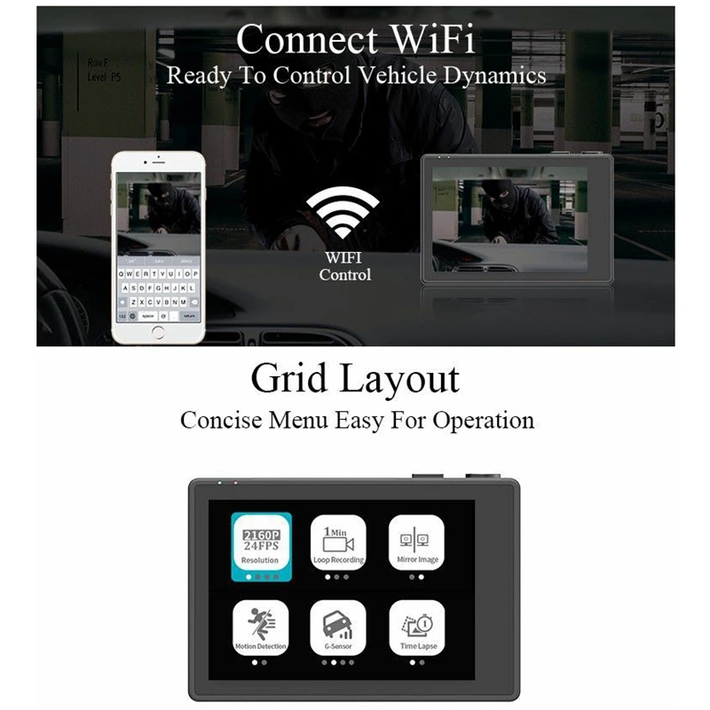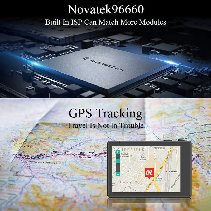 Novatek 96660 + передняя OV4689 + Задняя AHD1080P: Одиночная камера достигает 4K(2880*2160P @ 24 кадров в секунду); Двойная камера работает 1920*1080P @ 30 кадров в секунду + 1920*1080P @ 30 кадров в секунду. Наслаждайтесь путешествием по качественному видео.