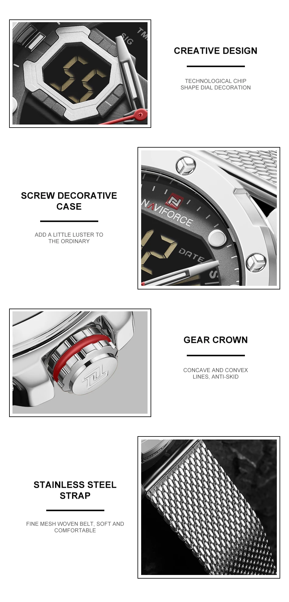 Мужские часы Топ люксовый бренд NAVIFORCE Военные Спортивные кварцевые часы мужские водонепроницаемые часы с хронографом светодиодный дисплей Reloj