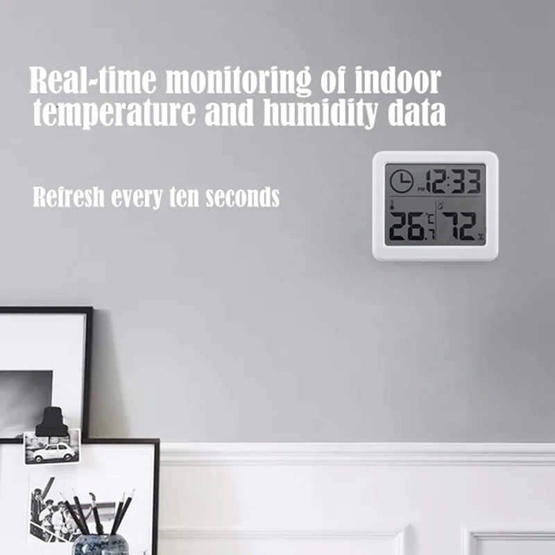 <Применение: Цифровой термометр гигрометр идеально подходит для детской комнаты, спальни, гостиной, склада, гостиничного номера, офиса и многого другого.