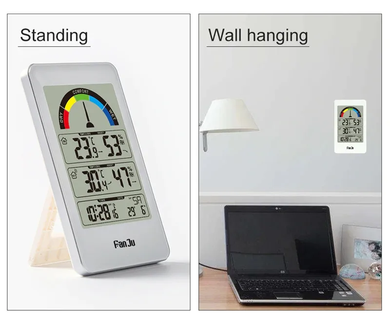 <Монитор температуры и влажности: цифровой барометр может контролировать температуру и влажность в помещении и на улице.