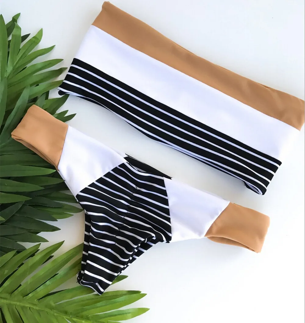 Женский комплект бикини в полоску, Раздельный купальный костюм из 2 предметов, пляжная одежда в богемном стиле, пляжная одежда для женщин, лето 2019