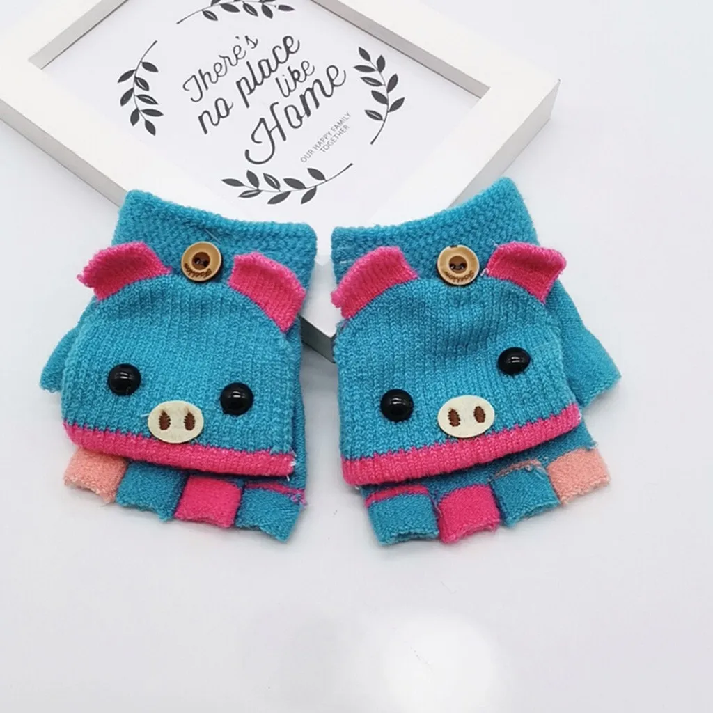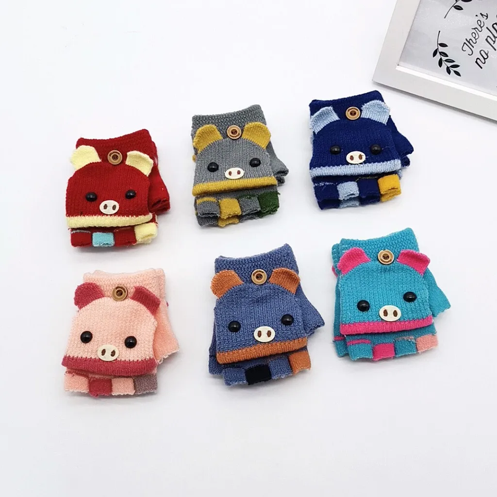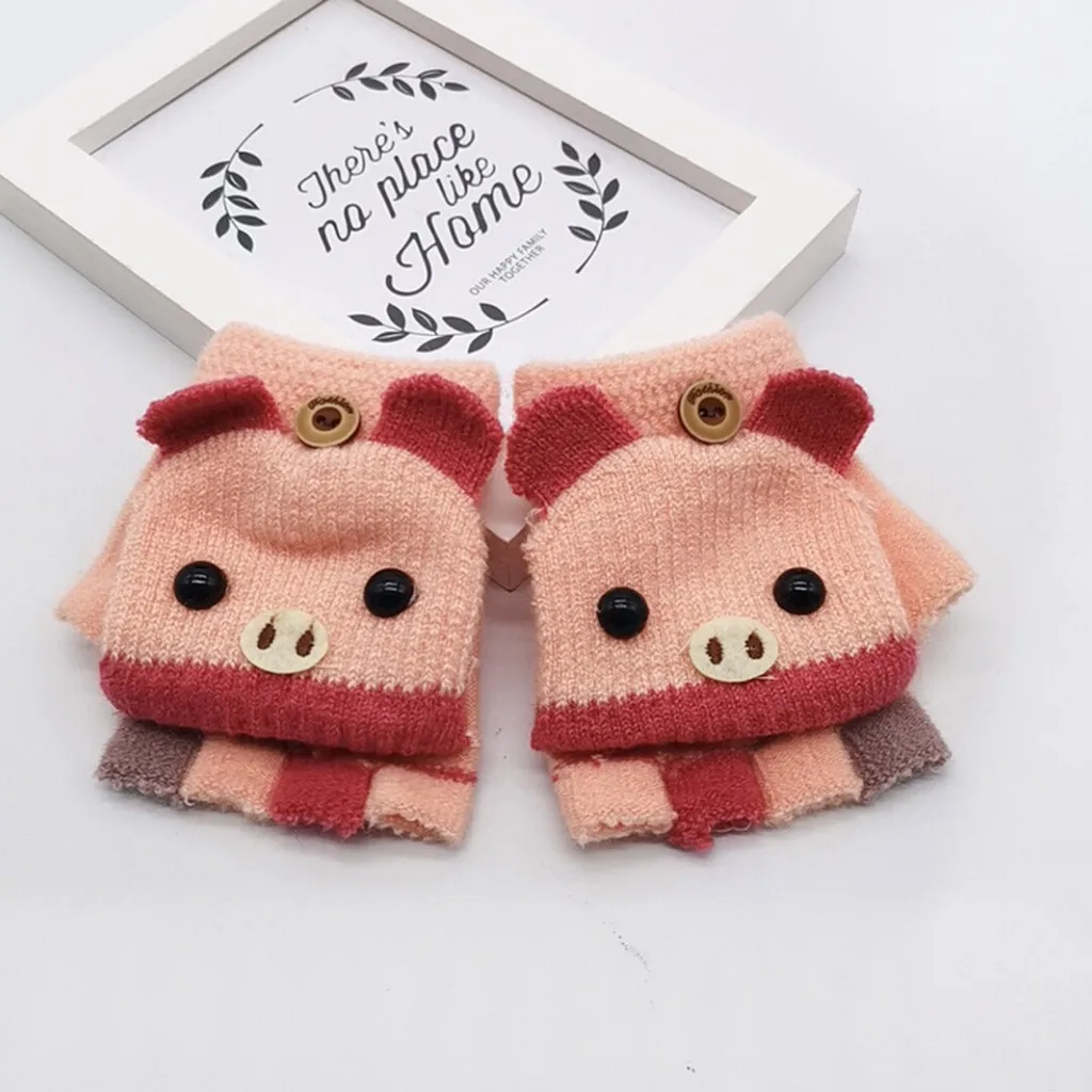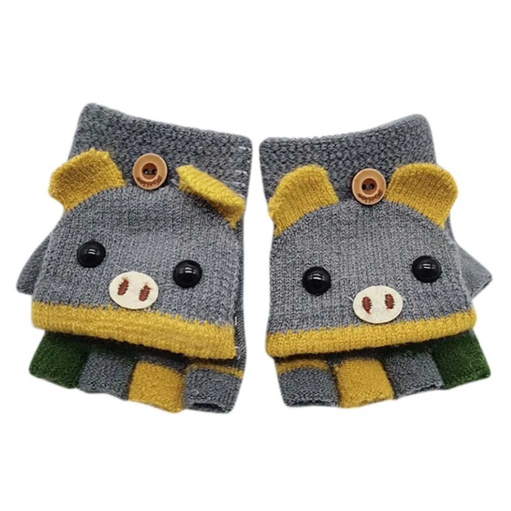 Детские перчатки, зимние перчатки, теплые вязаные перчатки с мультипликационным принтом, с откидной крышкой, без пальцев, рукавицы, перчатки, Handschoene