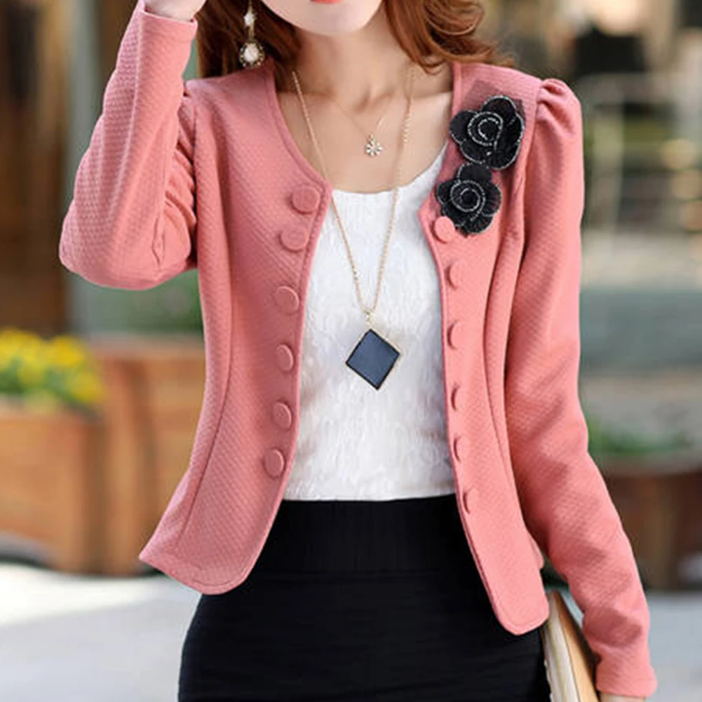 Офисный женский двубортный блейзер с длинными рукавами и цветочным принтом; пальто; сезон весна-осень; верхняя одежда