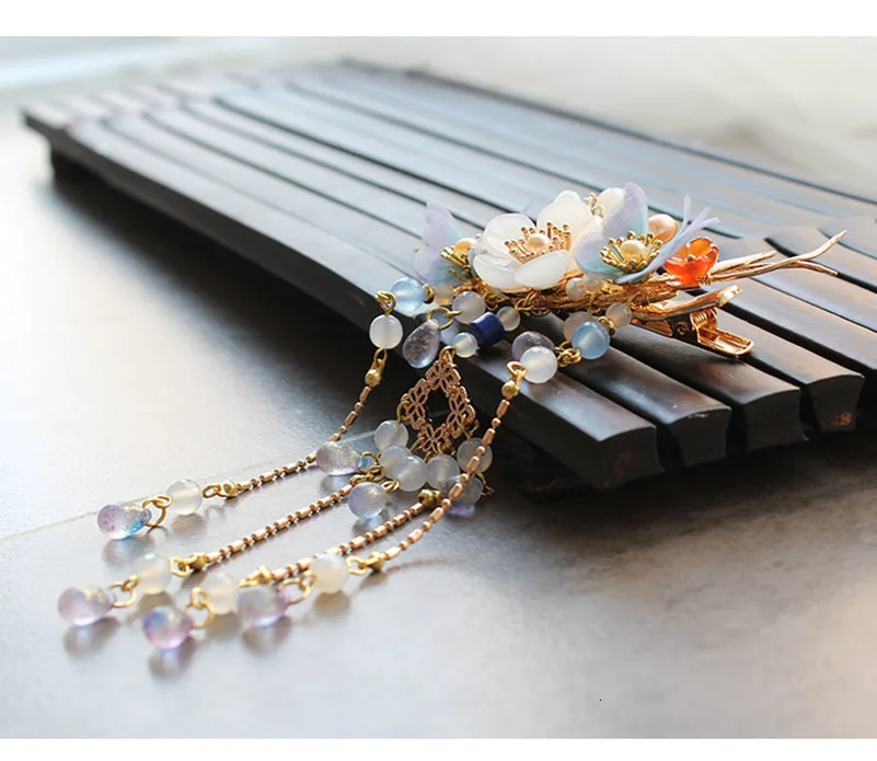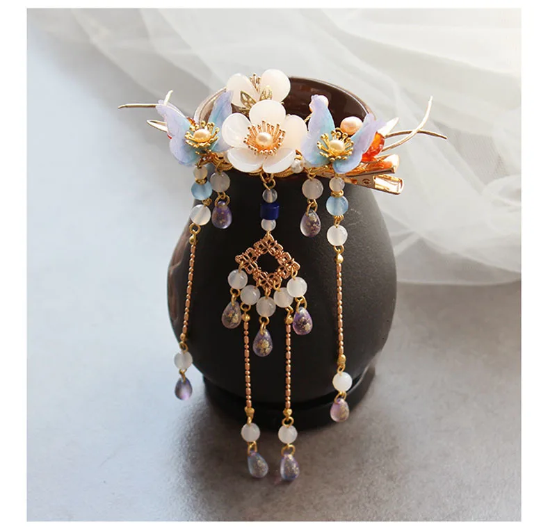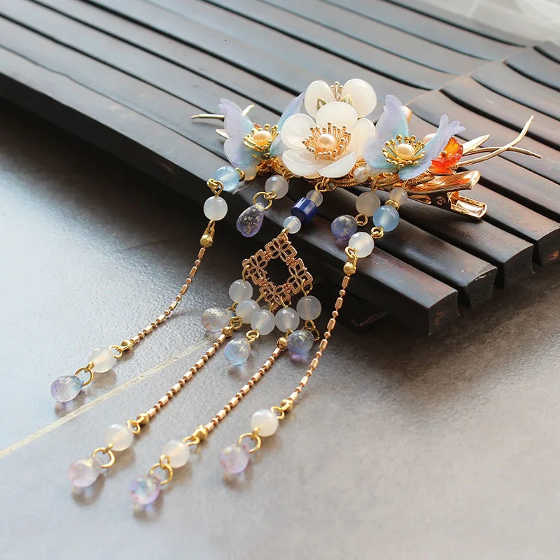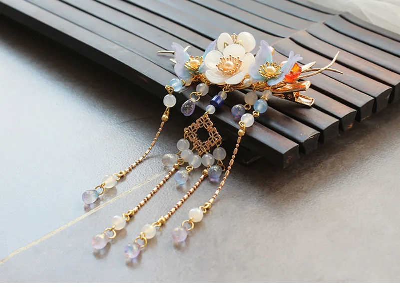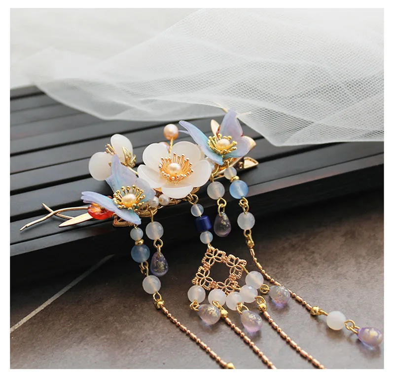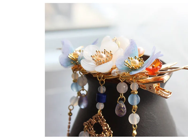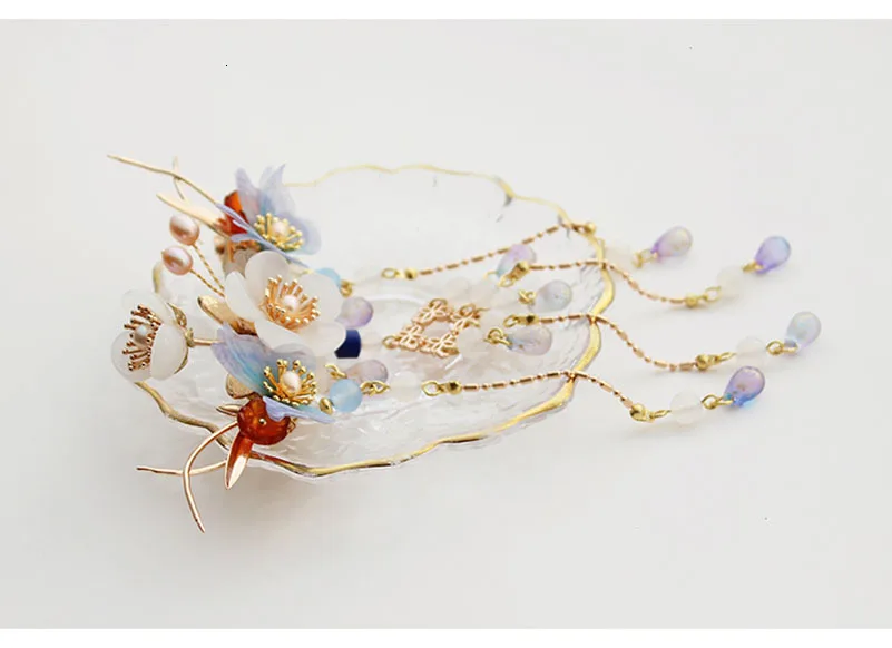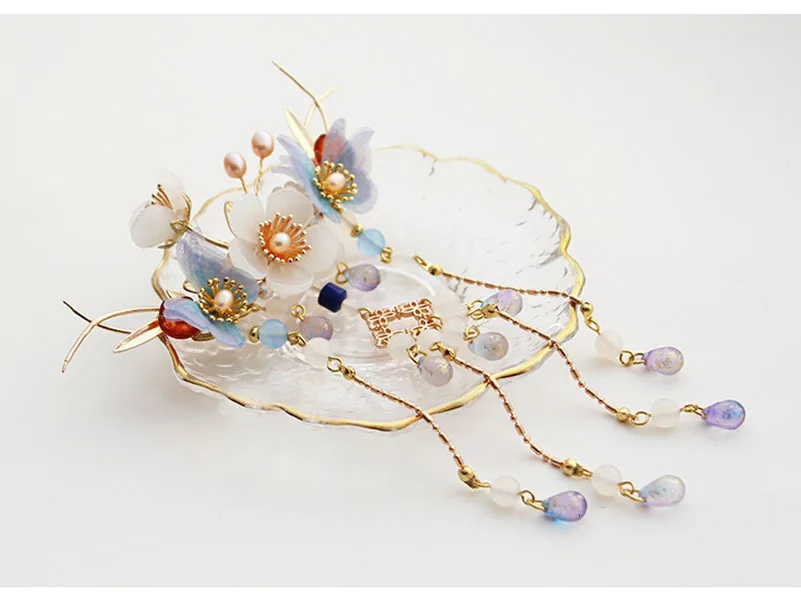 Инкрустация материал: Синяя руда, синие Бусины их халцедона, стеклянный лепесток, Пресноводный Жемчуг, Тюлевая бабочка,