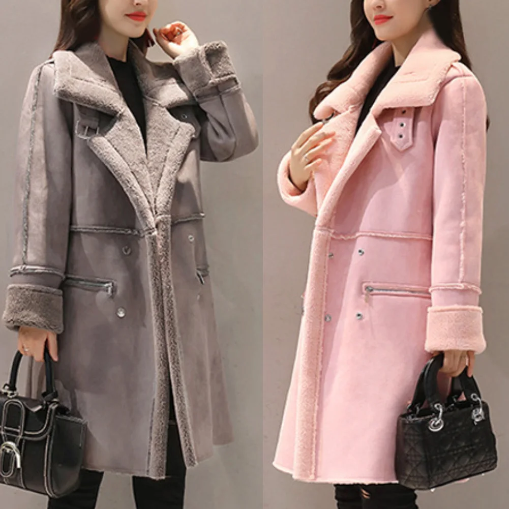 Женское зимнее пальто с воротником с лацканами и длинным рукавом, теплое флисовое пальто средней длины, куртка, свободная верхняя одежда