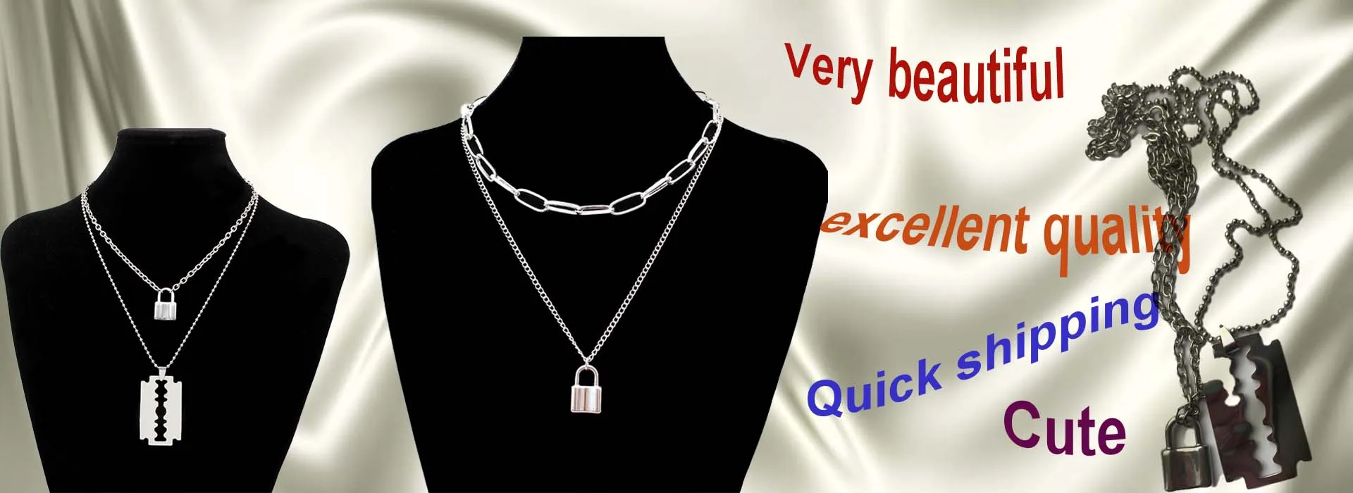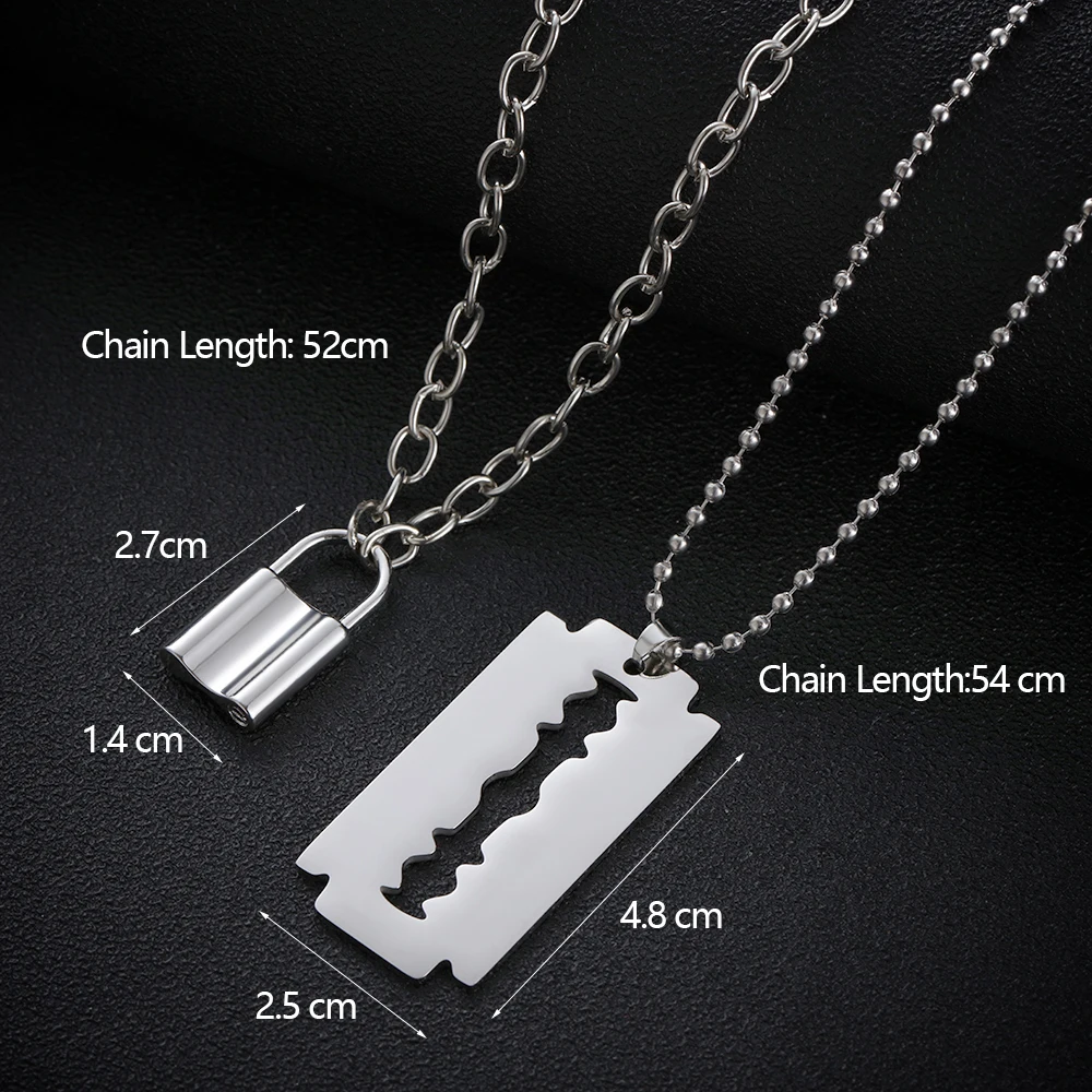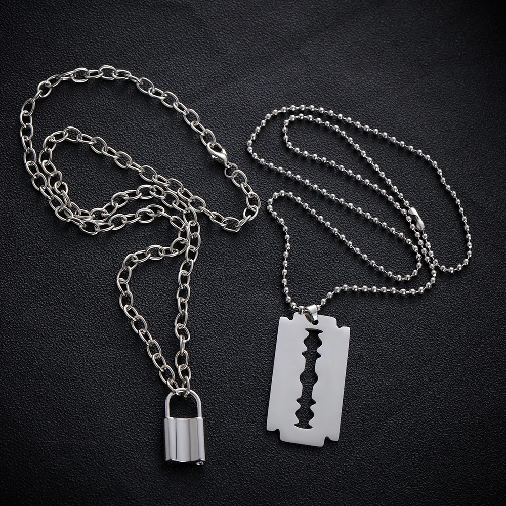 Hot Fashion Stainless Steel Padlock Lock Chain Necklaces Razor Blade Shaped Punk Choker Pendant Women Men Fashion Jewelry Gifts