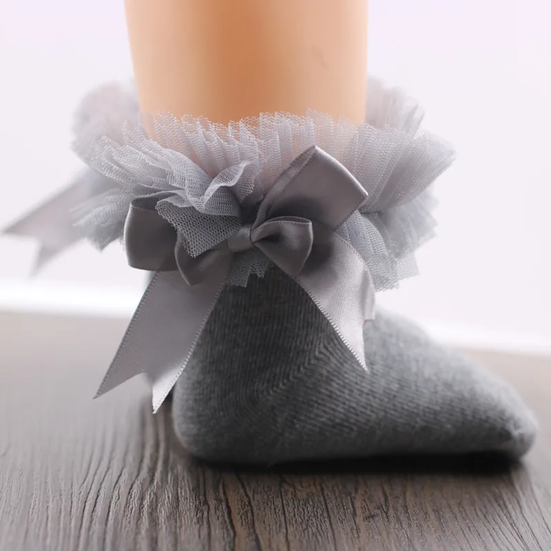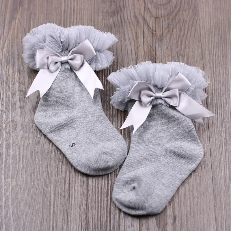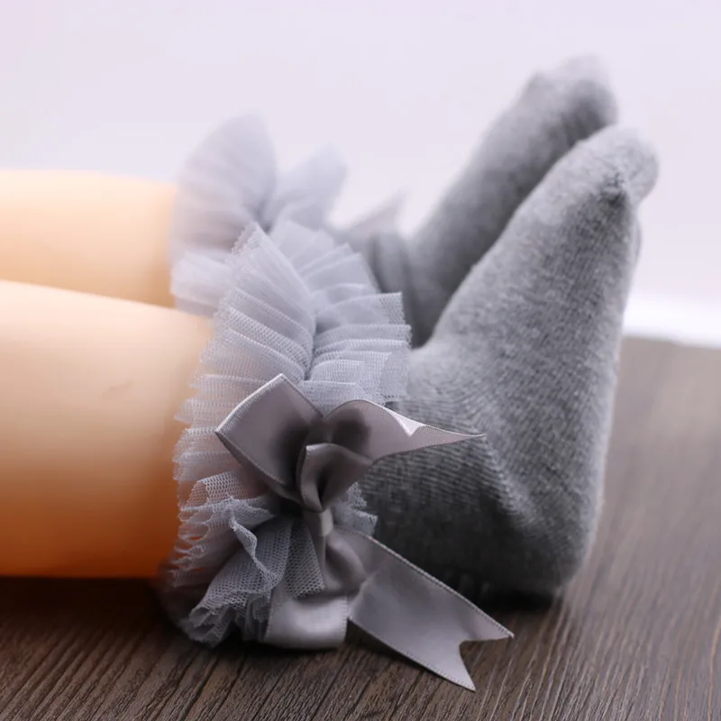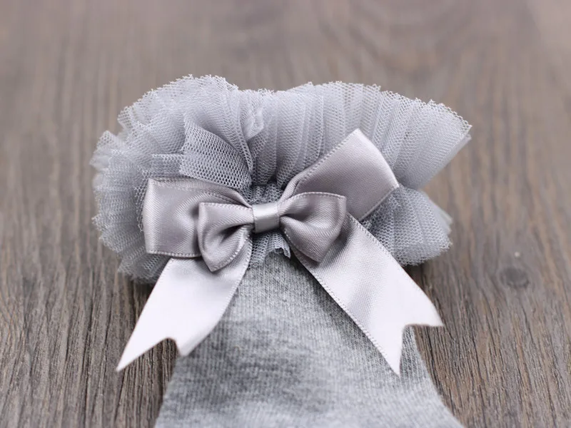 Кружевные носки для девочек с ленточным бантом