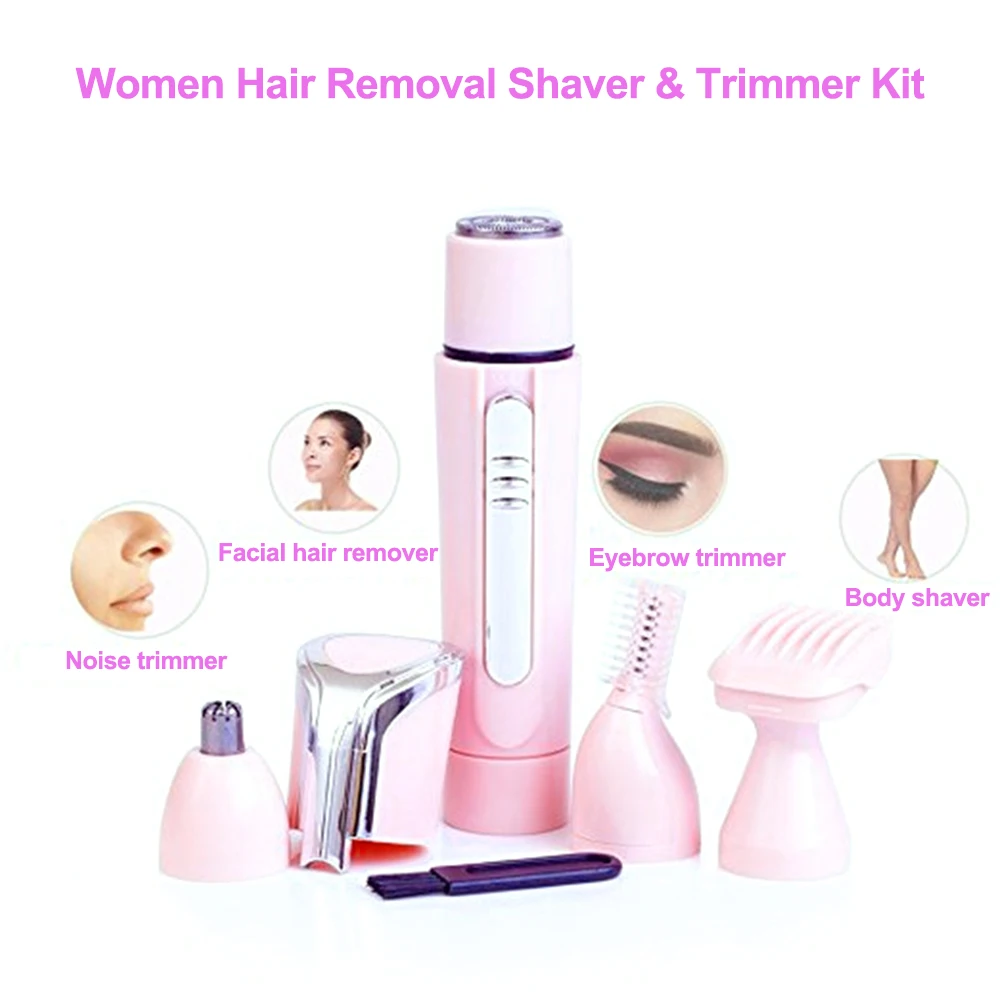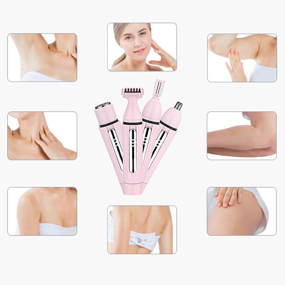 Каждый набор поставляется с 4 уникальными и функциональными сменными головками, которые включают в себя средство для удаления волос, бритву для тела, бритву для носа и триммер для бровей.