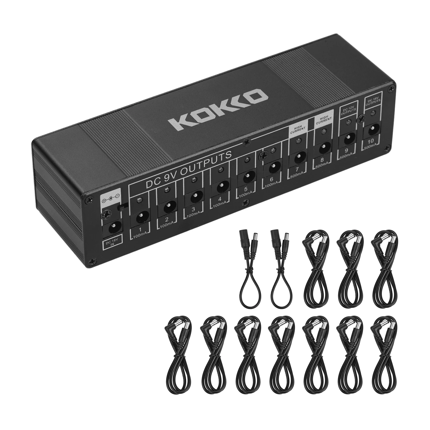 Источник питания 10 изолированных выходов постоянного тока для гитарных эффектов 9 В/12 В/18 в, компактный размер и металлический корпус, портативный и прочный.