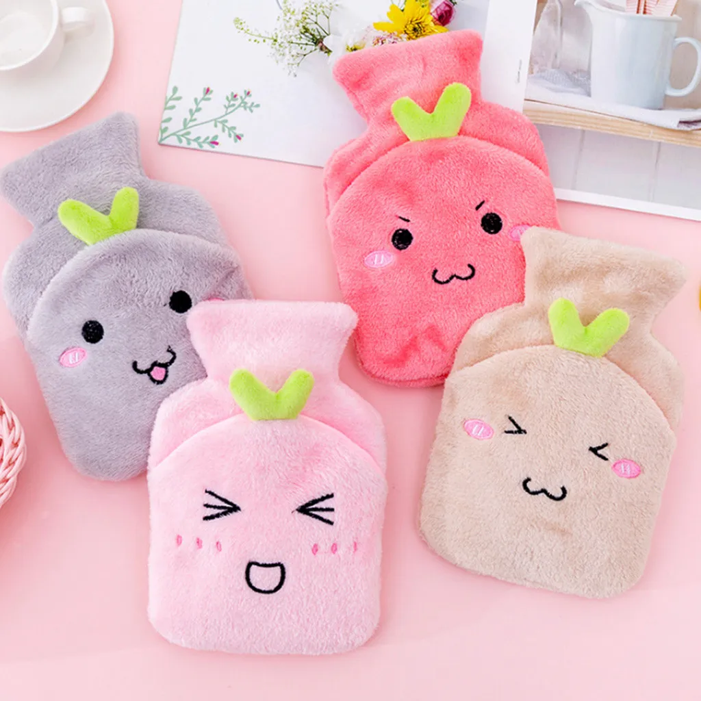 Мультяшная бутылка для горячей воды, взрывобезопасная плюшевая теплая сумка для воды, комплект съемной одежды для мытья рук, грелка