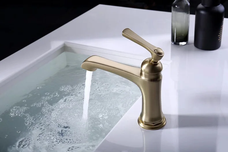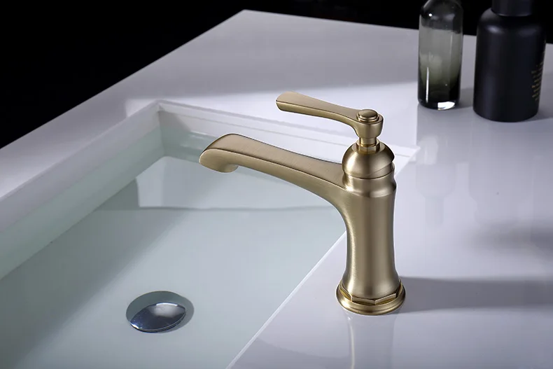 Матовый золотой Латунный кран для ванной комнаты, кран для раковины, краны для раковины, смесители, поворотный носик, горячая и холодная вода, оптовая продажа WF0027