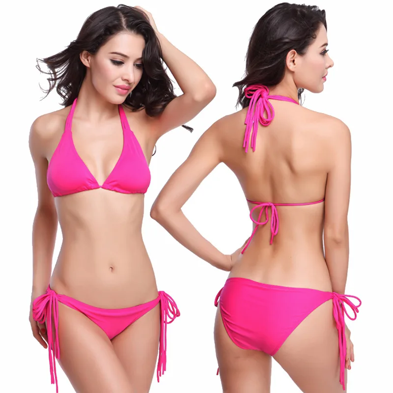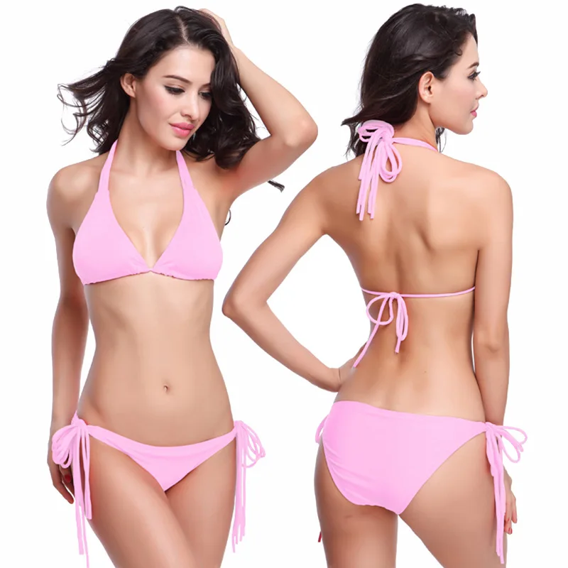 2020 купальные костюмы бикини для девочек, 10 цветов, бикини с заниженной талией, Женский Одноцветный купальный костюм бикини, пляжная одежда Купальные костюмы