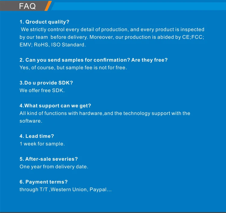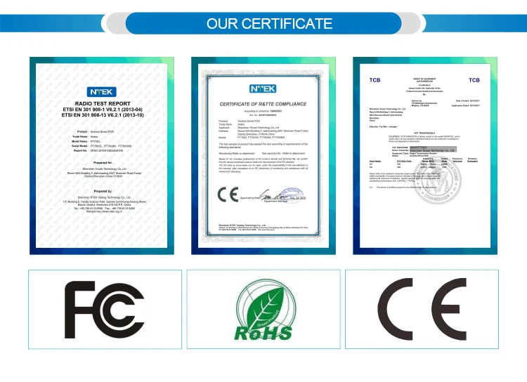 Wi-Fi/4G/Bluetooth/GSM/GPRS Поддержка приложений с Android market Поддержка 1D и 2D сканер штрих-кодов Поддержка карт (MSRICКарта NFC карта) 58 мм для печати чеков Мы работаем по OEM и ODM