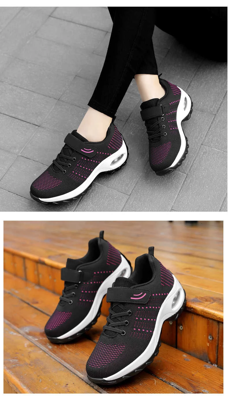 Women Shoes Sport Fashion Platform Sneakers Height Increase Ladies Wedge Shoes Lace Up Running Shoes Woman Thick Soled Footwear
