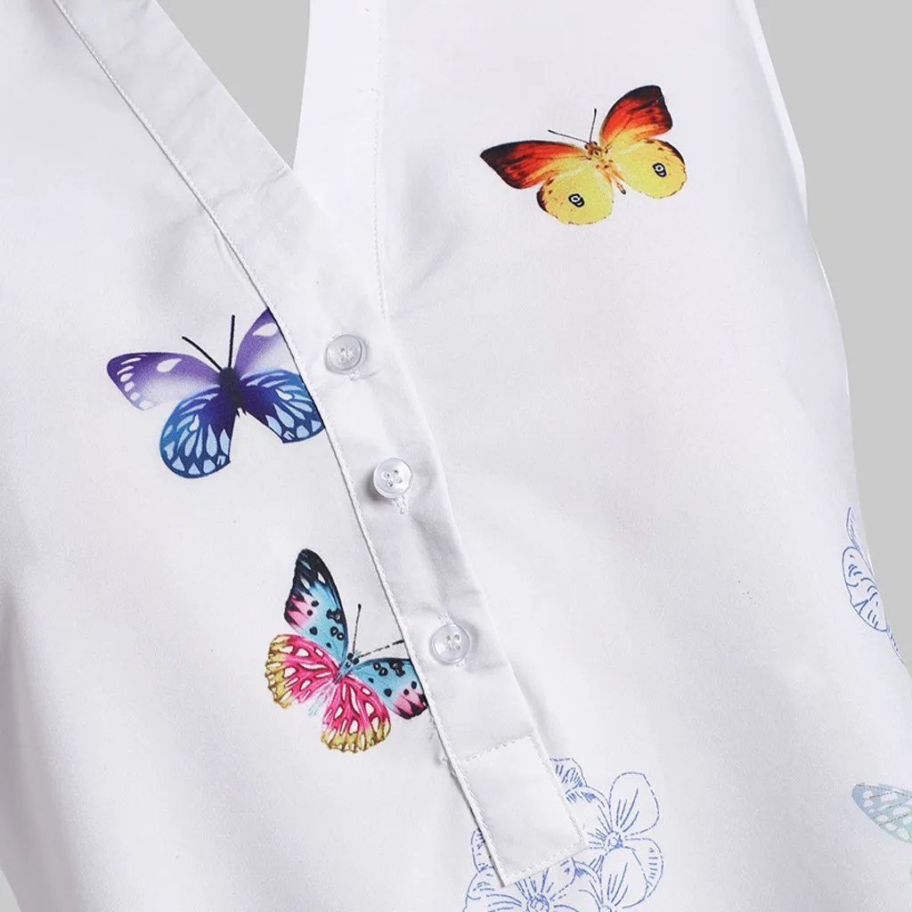 Женская Повседневная Блузка без рукавов размера плюс с принтом бабочки