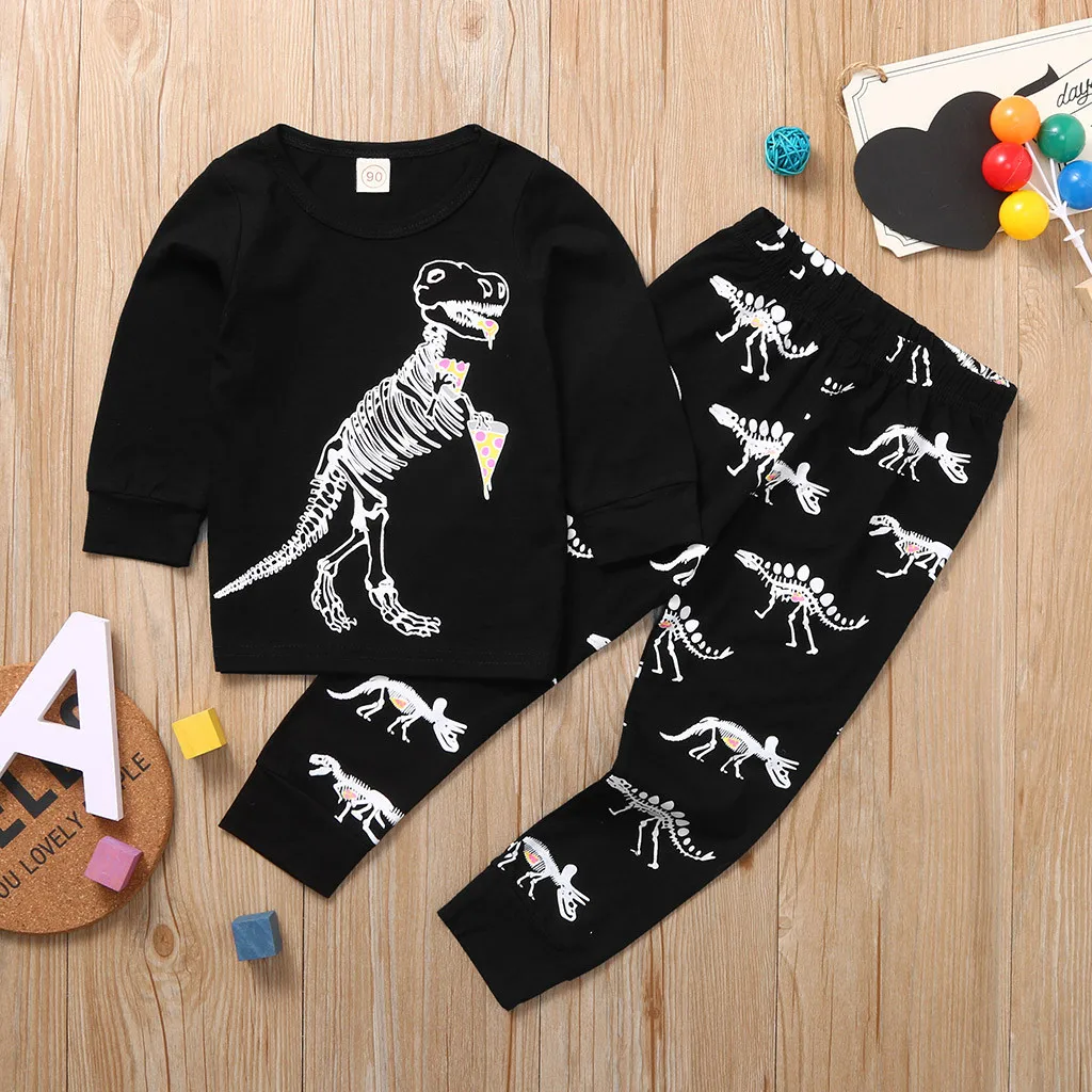 Детская футболка с динозавром из мультфильма для маленьких мальчиков, топ + штаны, пижама, одежда для сна, комплект одежды