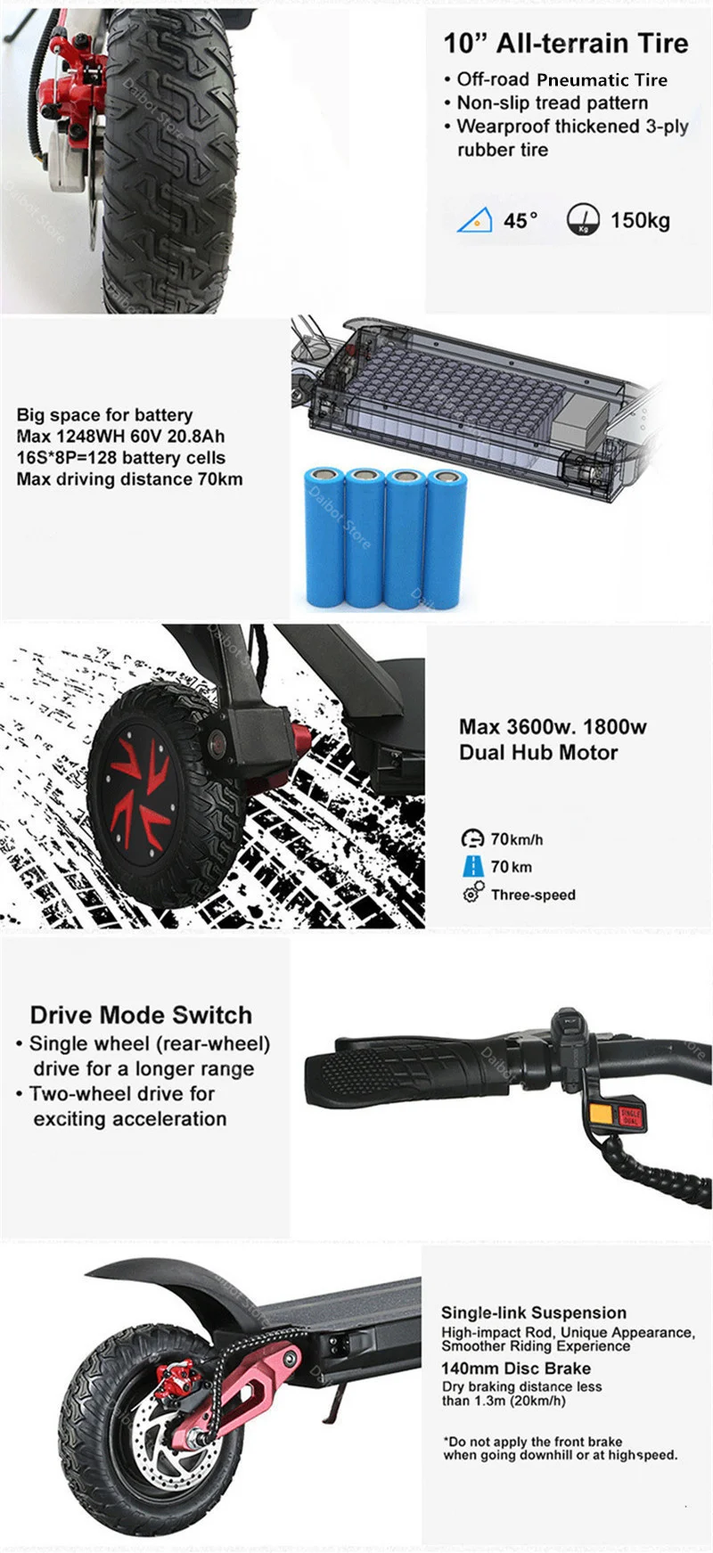 1. Наш тест был сделан водителем весом 55 кг на ровной и гладкой дороге. Максимальный диапазон отличается из-за различного веса водителя, скорости, эксплуатационного мастерства, состояния дорог и погоды.