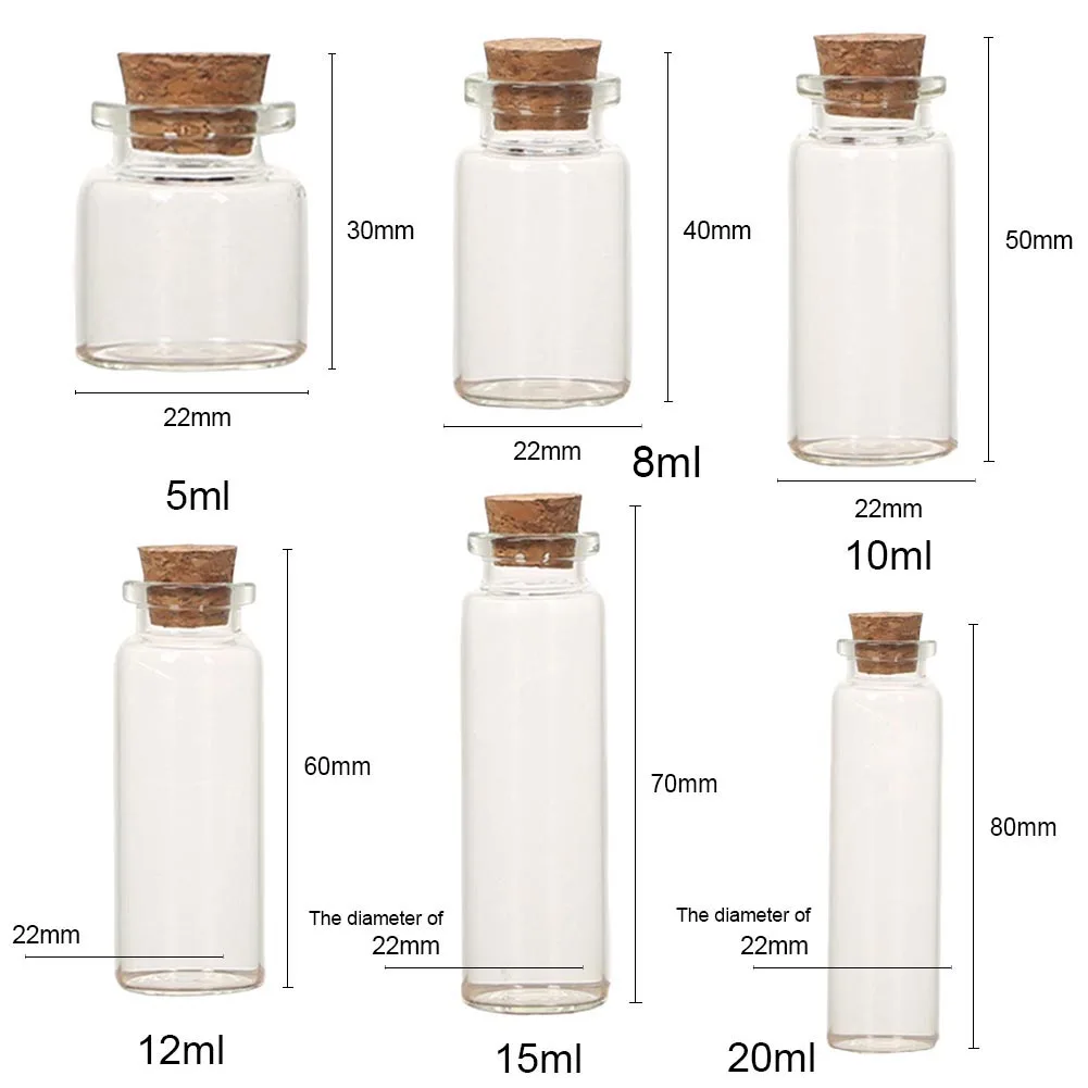 10 шт. 5/8/10/12/15/20 мл прозрачная мини корковой пробкой, желающих пустой Стекло бутылки флаконы