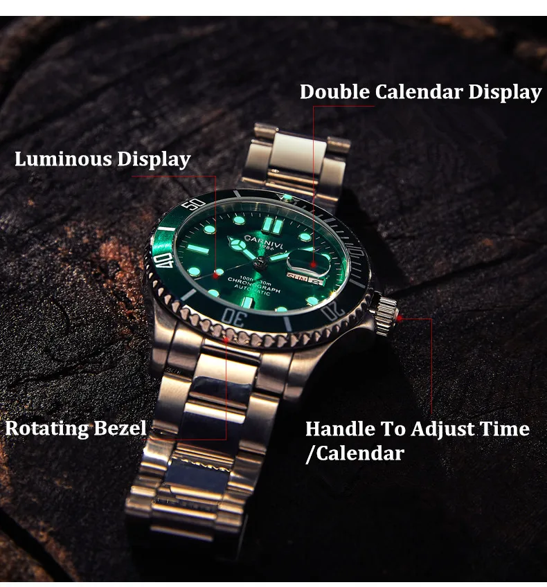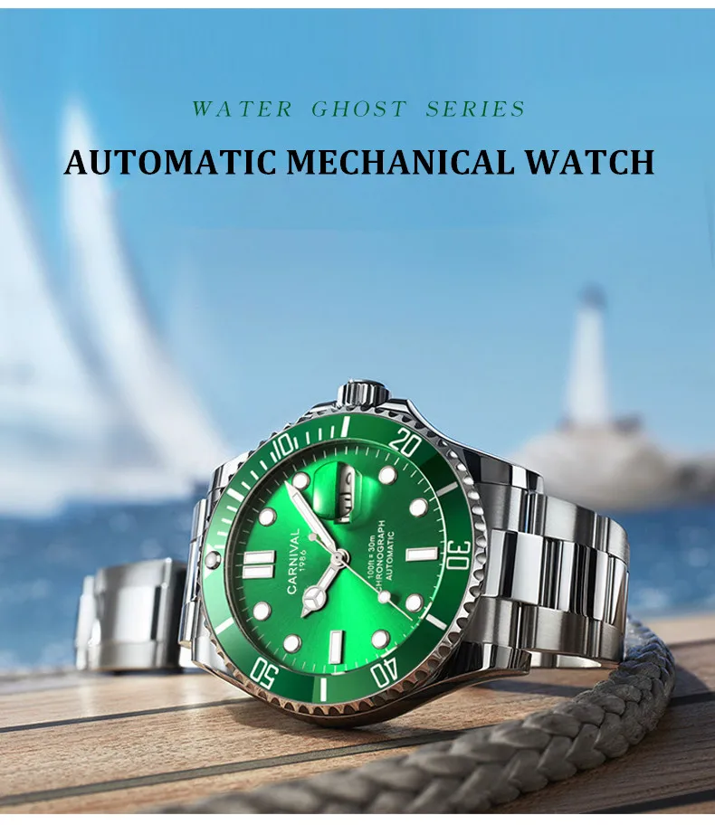 Часы наручные мужские механические водонепроницаемые с автоматическим подсветкой