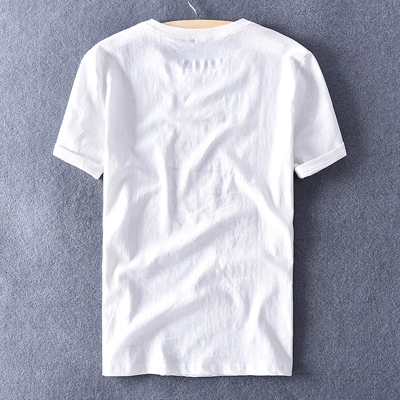 Итальянская стильная льняная брендовая мужская футболка, трендовая черная футболка для мужчин, Повседневная дышащая футболка с круглым вырезом, Мужская футболка с вышивкой