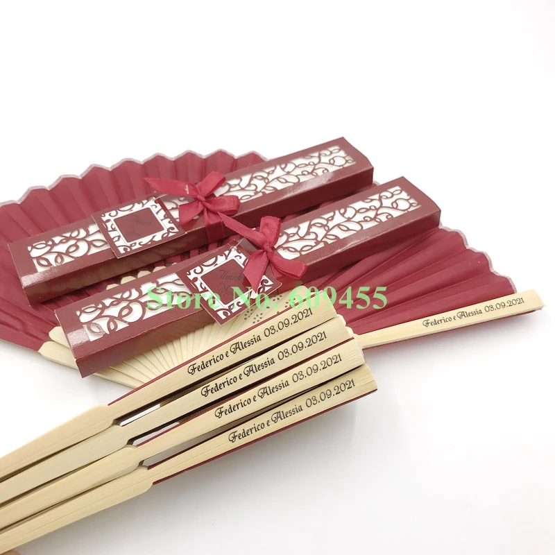Детская одежда на рост 80, 85 шт. Персонализированные Свадебные складывающиеся Шелковый веер складной бамбуковый вентиляторы в Роскошная Подарочная коробка по индивидуальному заказу Свадебная вечеринка свадебные сувениры