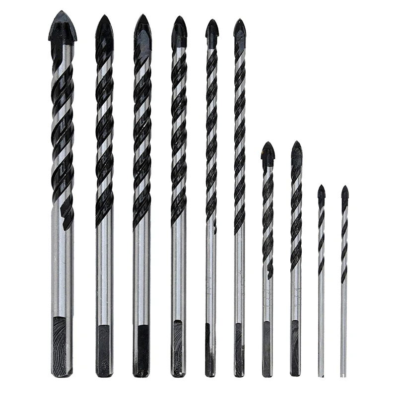 10 шт набор сверл для кладки (плитка, кирпич, цемент, бетон, стекло, пластик, дерево) хромированный с промышленной прочностью автомобиль