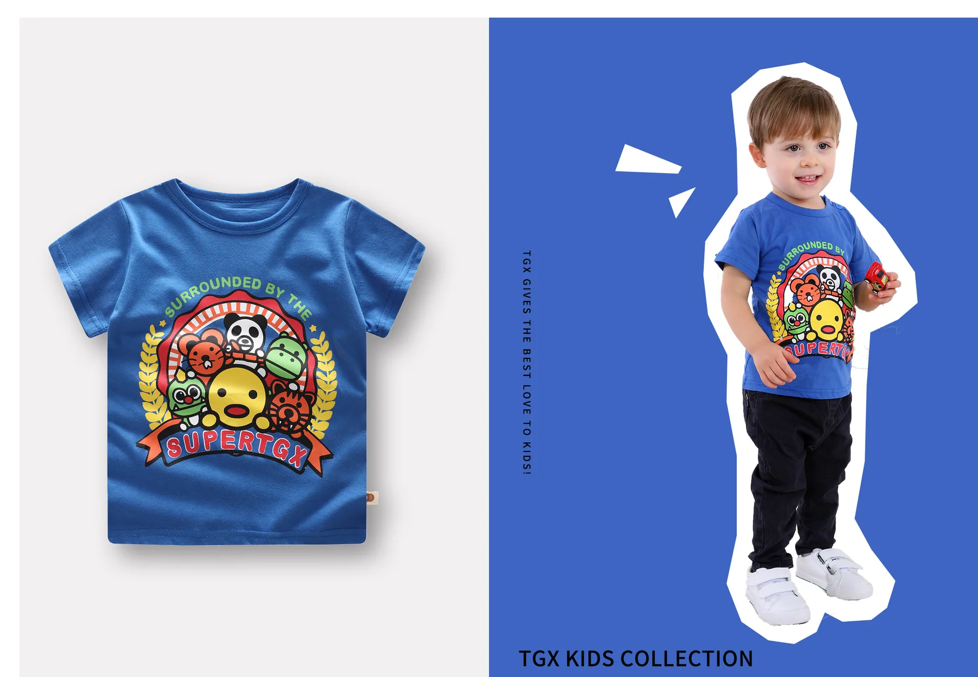 Летние хлопковые футболки для маленьких мальчиков и девочек 1, 2, 3, 4, 5, 6, 7 лет, модные детские футболки с принтом животных, футболки для малышей, детские топы, одежда